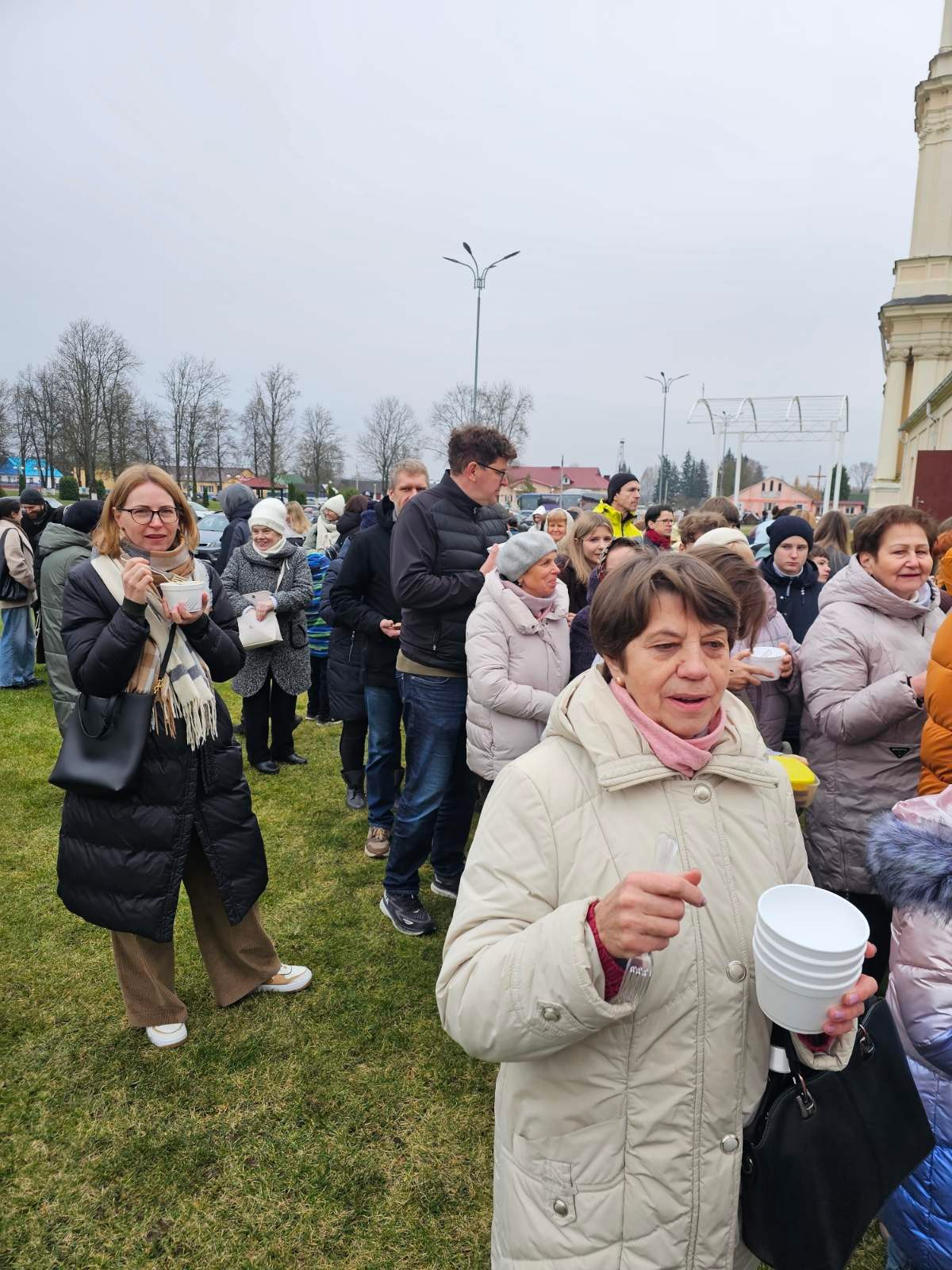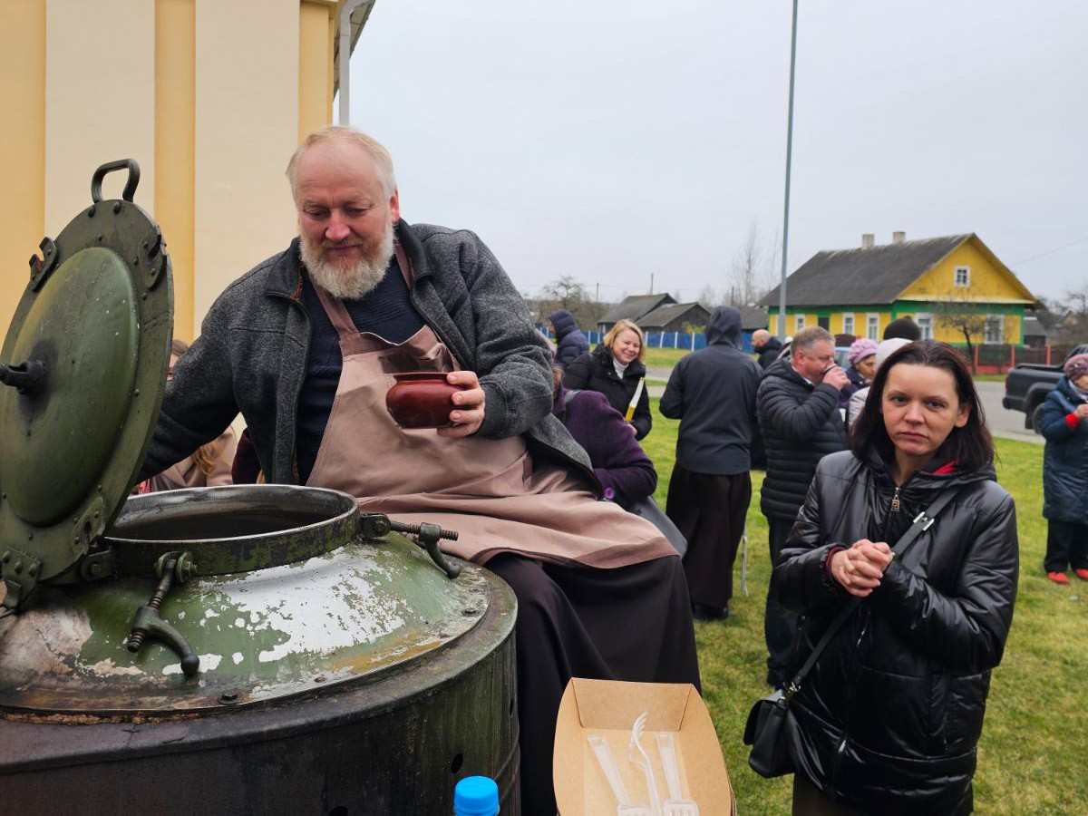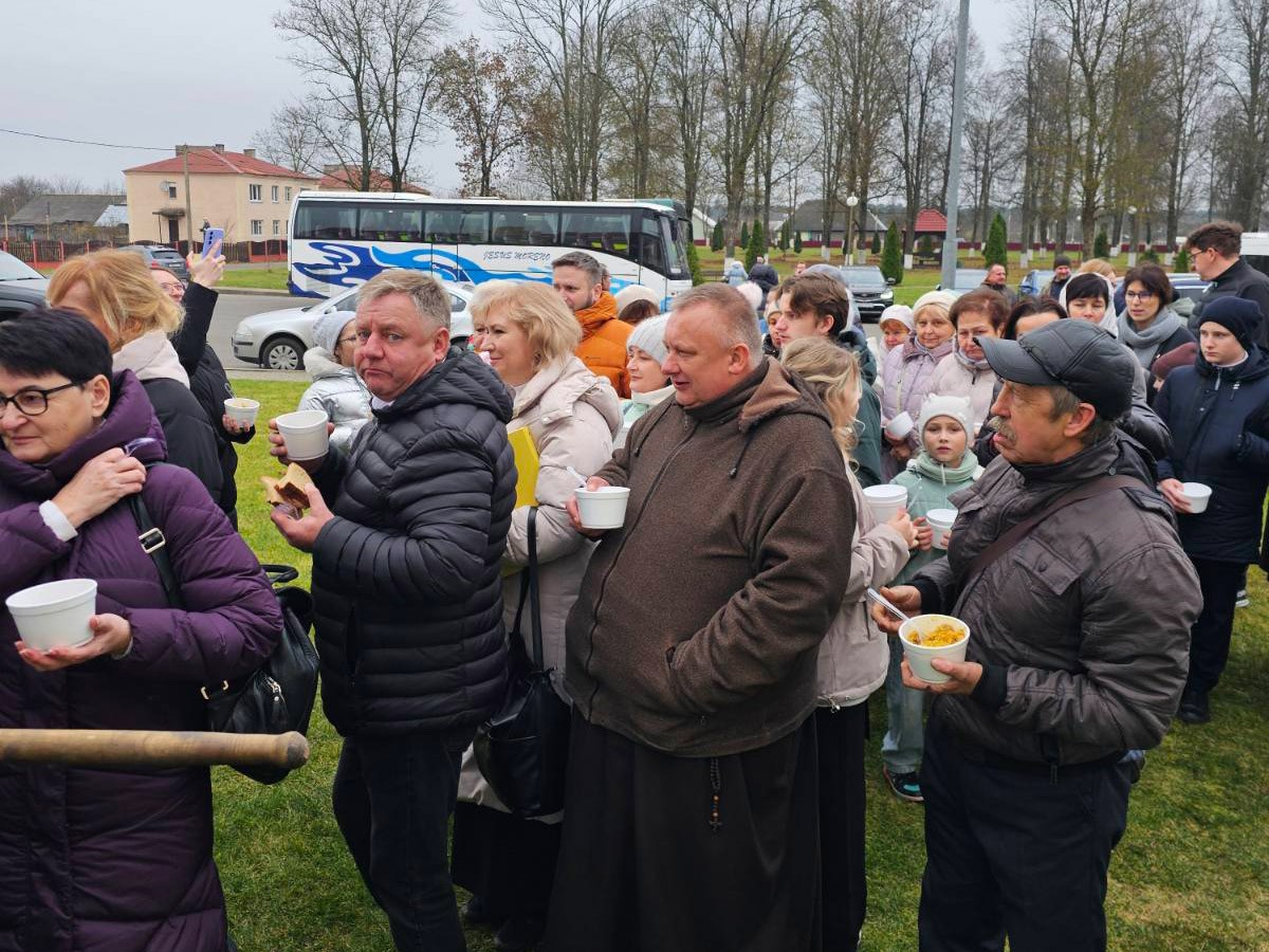 Ад напружаных разважанняў і малітвы разыграўся апетыт. Таму ўсіх ўдзельнікаў набажэнства на вуліцы чакала палявая кухня, якая мае вялікі вопыт пешых пілігрымак ў Будслаў. Брат Войцех Врублеўскі частаваў усіх жадаючых журэкам - супам на заквасцы, якую ён гадаваў некалькі дзён. Таксама нашымі парафіянамі быў згатаваны смачны плоў. А с. Маргарыта з Докшыц прывезла смачны смалец. І размовы. Радасна было вітаць братоў, якія калісьці служылі ў нашай парафіі. Цудоўна, калі і ў Будславе адчуваеш сябе як дома, сярод тых, каго любіш.