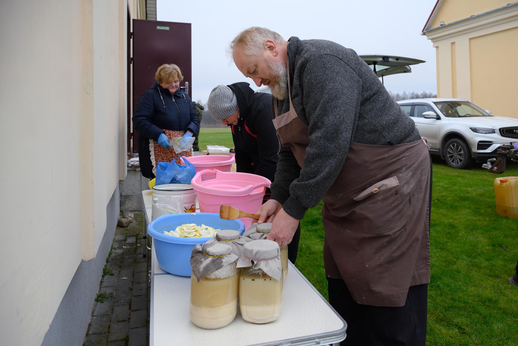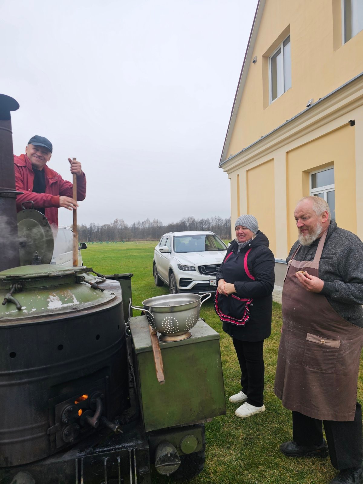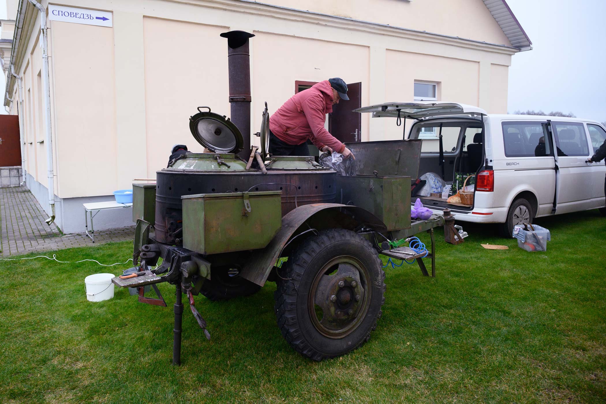 Ад напружаных разважанняў і малітвы разыграўся апетыт. Таму ўсіх ўдзельнікаў набажэнства на вуліцы чакала палявая кухня, якая мае вялікі вопыт пешых пілігрымак ў Будслаў. Брат Войцех Врублеўскі частаваў усіх жадаючых журэкам - супам на заквасцы, якую ён гадаваў некалькі дзён. Таксама нашымі парафіянамі быў згатаваны смачны плоў. А с. Маргарыта з Докшыц прывезла смачны смалец. І размовы. Радасна было вітаць братоў, якія калісьці служылі ў нашай парафіі. Цудоўна, калі і ў Будславе адчуваеш сябе як дома, сярод тых, каго любіш.