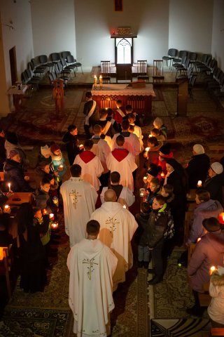 На працягу Адвэнту ў 6.15 будзем спяваць Гадзінкі аб Беззаганным Зачацці Найсвяцейшай Панны Марыі, а пасля Гадзінак, у 6.45 - удзельнічаць у святой Імшы, называнай “Раратняй”. У сераду і пятніцу замест Гадзінак запрашаем на малітву Ютрань.