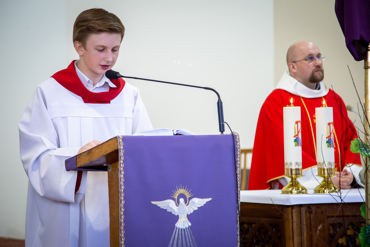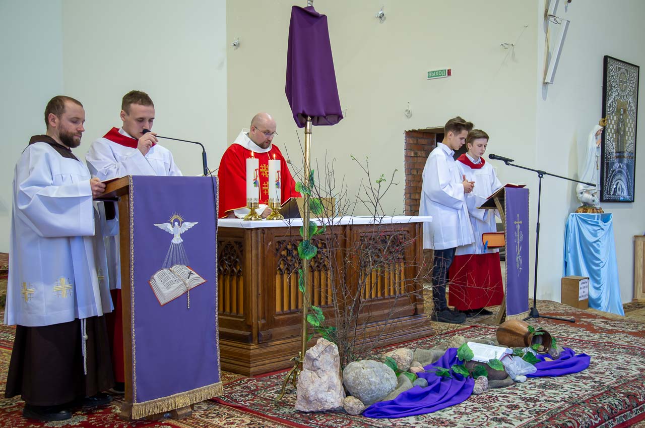 Сення ўрачыстую Св. Імшу цэлебраваў пробашч, брат Ігар Колзун. Пад час гаміліі асаблівую ўвагу ён звярнуў на ўрывак з Евангелля паводле Мц. 21, 1-11.
