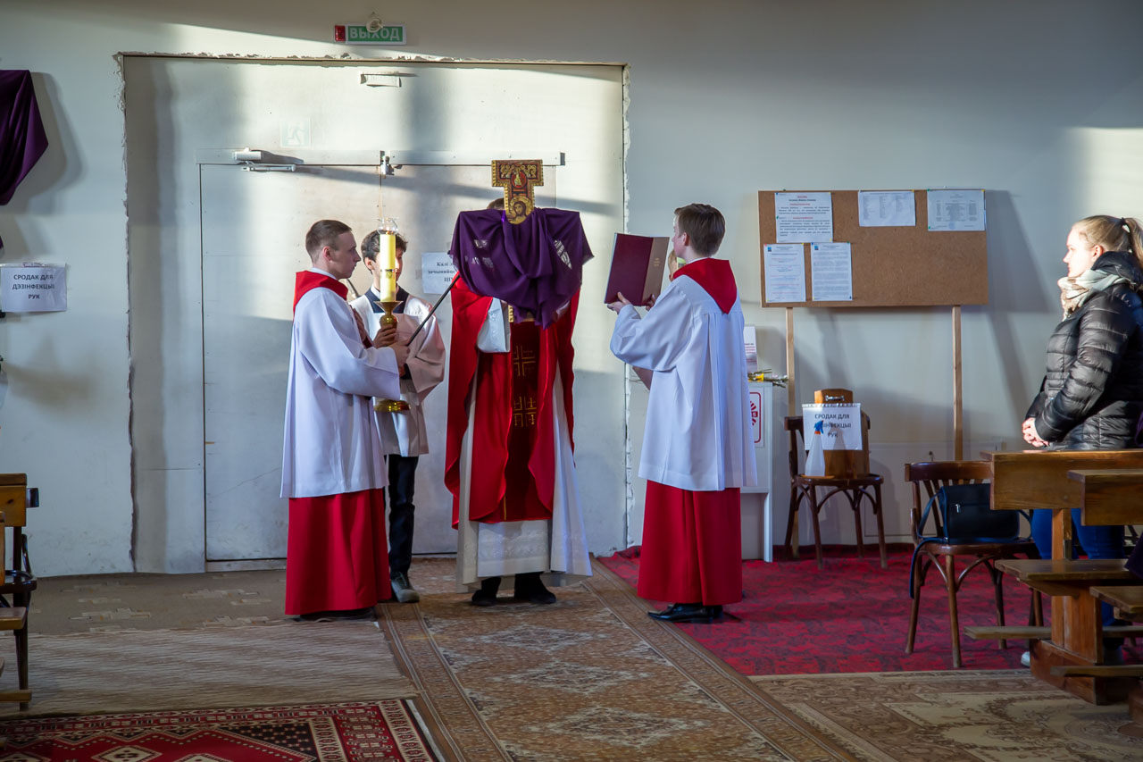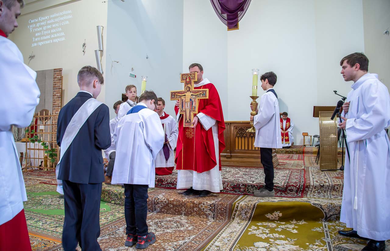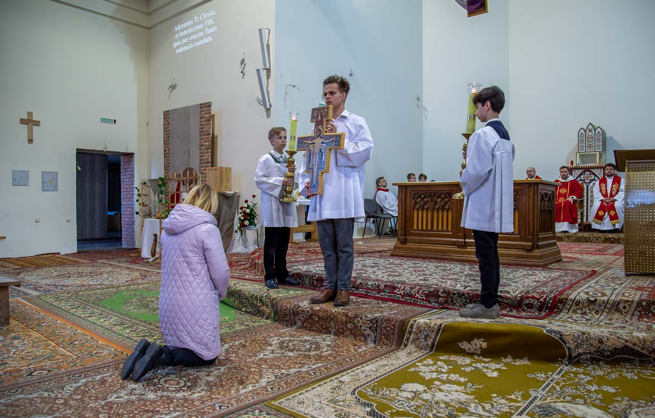 Цэлебрацыю літургіі Мукі Пана ў нашай парафіі ўзначаліў брат Андрэй Квяцінскі. У гэты дзень Касцёл не здзяйсняе звычайнай Эўхарыстыі. Галоўнае месца займае адарацыя Крыжа. Крыж – можна назваць адной з галоўных кніг Божага Аб’яўлення, кніг Святога Пісання, якую трэба вучыцца чытаць.