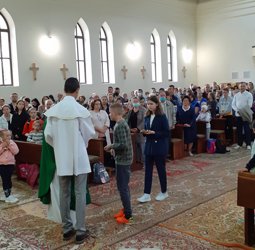 Святую Імшу цэлебраваў пробашч парафіі бр. Ігар Колзун, які падчас гаміліі нагадаў пра важны абавязак бацькоў - хрысціянскае выхаванне сваіх дзяцей. Напрыканцы святой Імшы адбылося благаслаўленне вучняў і настаўнікаў на новы навучальны год.