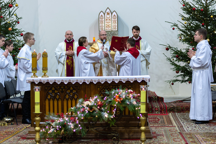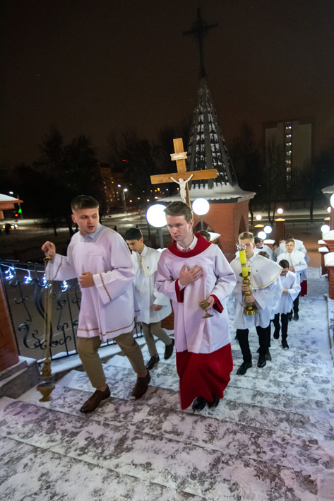 Імша распачалася працэсіяй, у якой маленькі Езус быў ўрачыста пранесены і змешчаны ў яслі. Хрыстос нарадзіўся! Славім Яго!