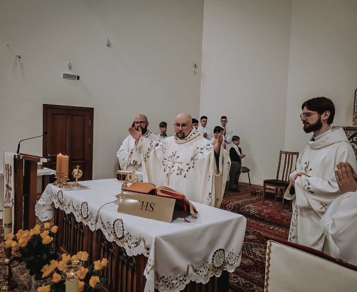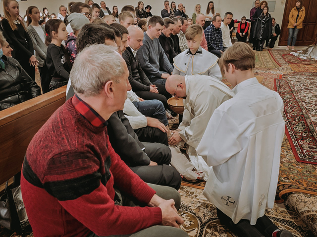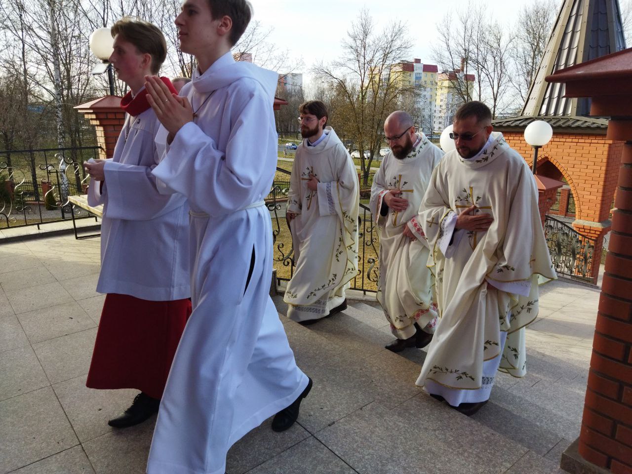 У Вялікі чацвер а. Ігар Колзун, пробашч нашай парафіі, цэлебраваў адмысловую Святую Імшу Вячэры Пана, якой распачаўся Пасхальны Трыдуум.