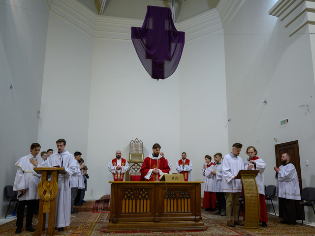 У Вялікую пятніцу пасля Крыжовага шляху пачалася адмысловая Літургія Мукі Пана.