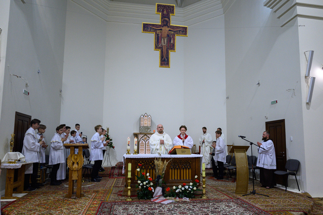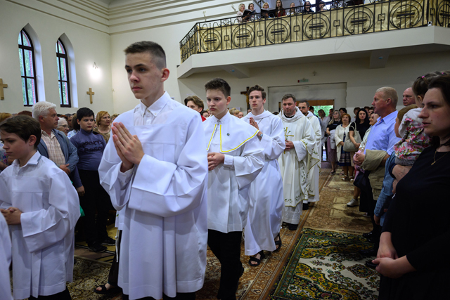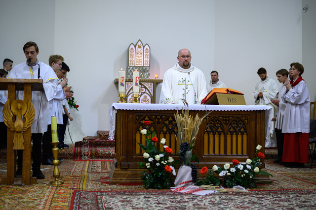 Урачыстую імшу цэлебраваў ксёнз-пробашч нашай парафіі а. Ігар Колзун. Шмат вернікаў прыйшло пасля працы да святыні, каб злучыцца ў супольнай малітве. Айцец Уладзіслаў падкрысліў падчас гаміліі важнасць у гэты дзень яшчэ раз засяродзіцца на Таямніцы Эўхарыстыі і пераасэнсаваць важнасць лучнасці з Хрыстом у Святой камуніі. Самая годная манстранцыя для Найсвятейшага Сакраманта – гэта чыстае сэрца чалавека.