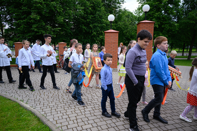 Пасля Святой імшы традыцыйна адбылася працэсія вакол касцёла, якую пдарыхтавалі нашыя сёстры. Дарэчы, першыя звесткі пра працэсію з чатырма алтарамі паходзяць з Германіі, з Кёльна, і адносяцца да ХIV ст. У працэсіях, падчас якіх святар выносіць Найсвяцейшыя Дары з касцёла, хрысціяне даюць публічнае сведчанне сваёй веры і пабожнасці ў адносінах да Найсвяцейшага Сакрамэнту. Дзяўчаты, апранутыя як анёлы, кідалі пялёсткі кветак перад манстранцыяй з Найсвяцейшымі Дарамі. Спеў хору разносіўся навокал і прыцягваў увагу жыхароў гораду.