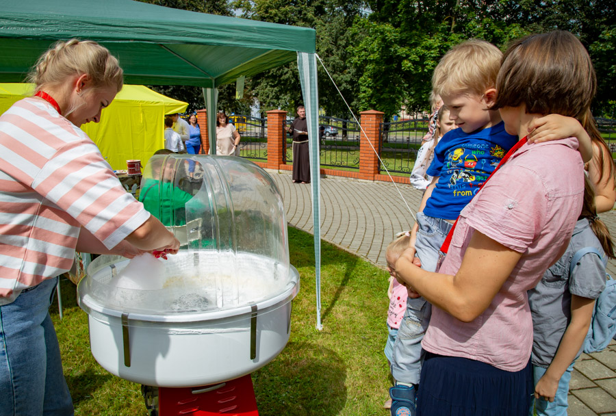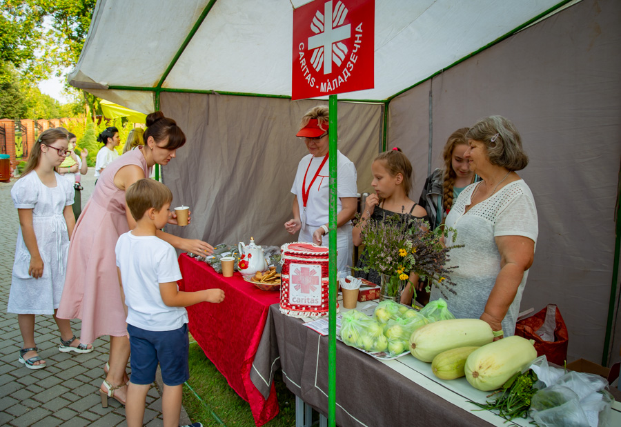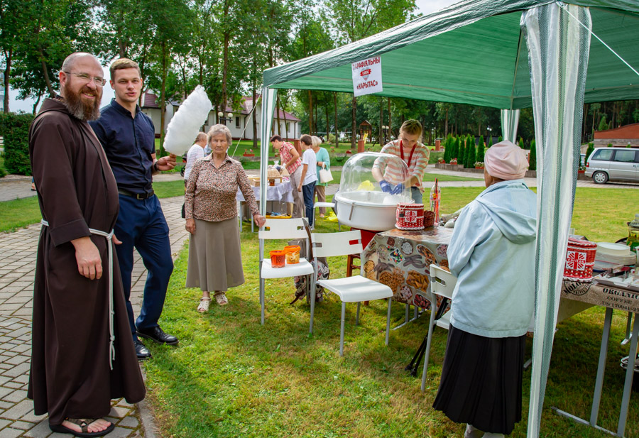 Моладзь ФМ Тау частавала кавай. У валанцёраў парафіяльнай супольнасці Карытас маленькіх парафіянаў чакала салодкая вата, рознае смачнае дамашняе печыва. Можна было прысесці пачаставацца дранікамі, выпіць травяной гарбаты розных відаў. Таксама можна было палюбавацца і прыдбаць абразы, прыгожа вышытыя ў капуцынскай майстэрні Sacris Vestibus, прыгожыя кошыкі і розныя іншыя дэкаратыўныя вырабы нашых майстроў Раі Квяцінскай і Аляксея Місевіча.