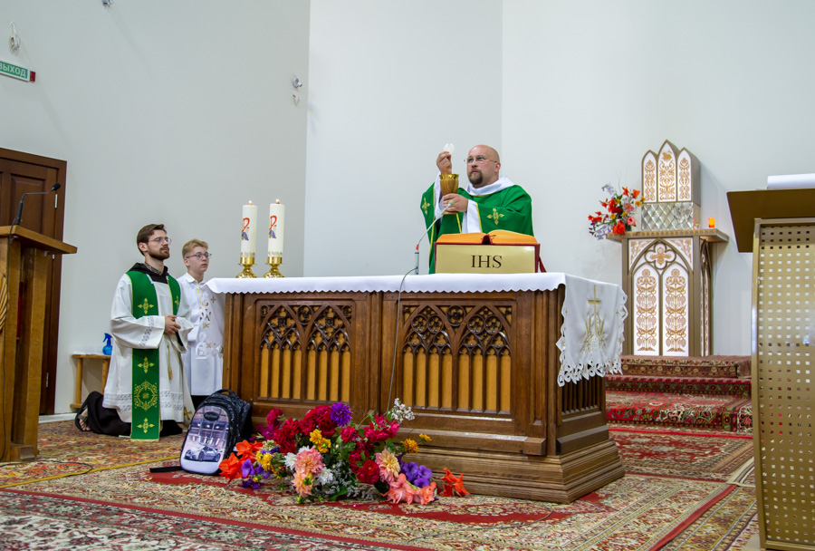 Напрыканцы Св. Імшы брат Ігар акрапіў прынесеныя школьныя прылады і рэчы. Настаўнікі, выкладчыкі, катэхеты, вучні і студэнты атрымалі Божае бласлаўленне на новы навучальны год.
