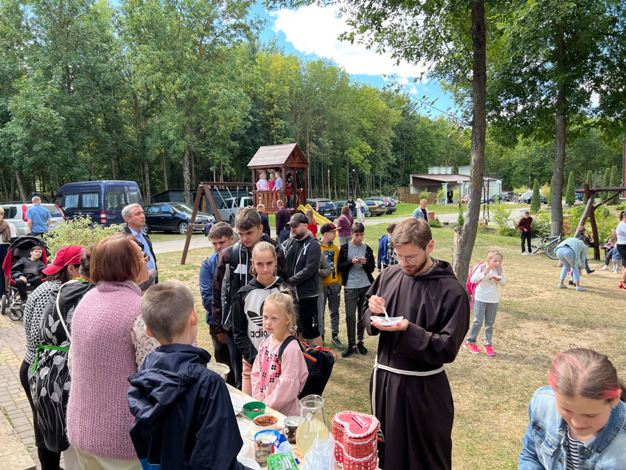 Пасля брат Ігар запрасіў усіх на інтэрактыўную пляцоўку для дзяцей, якую арганізавалі браты капуцыны разам з валанцёрамі парафіяльнага Карытас.