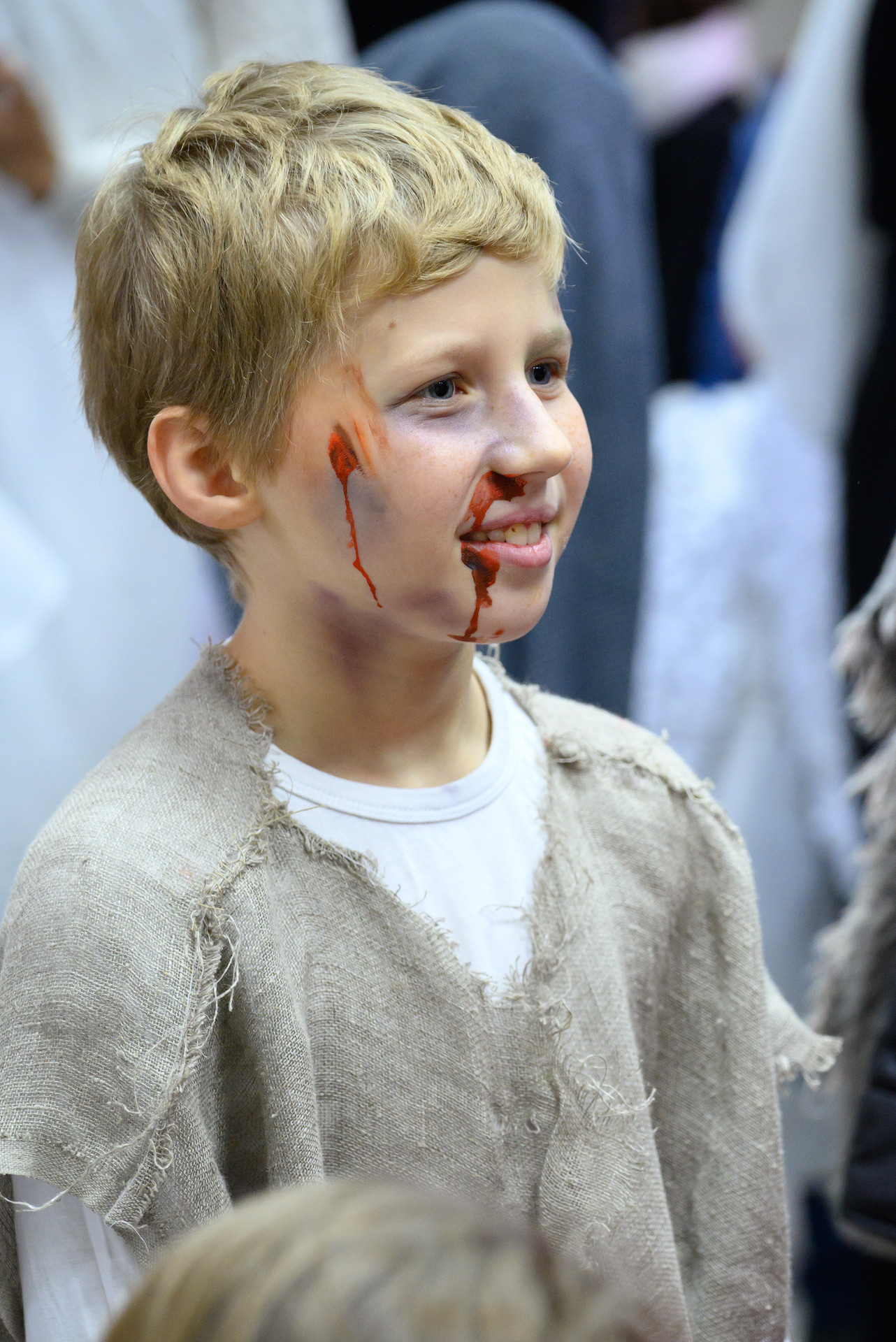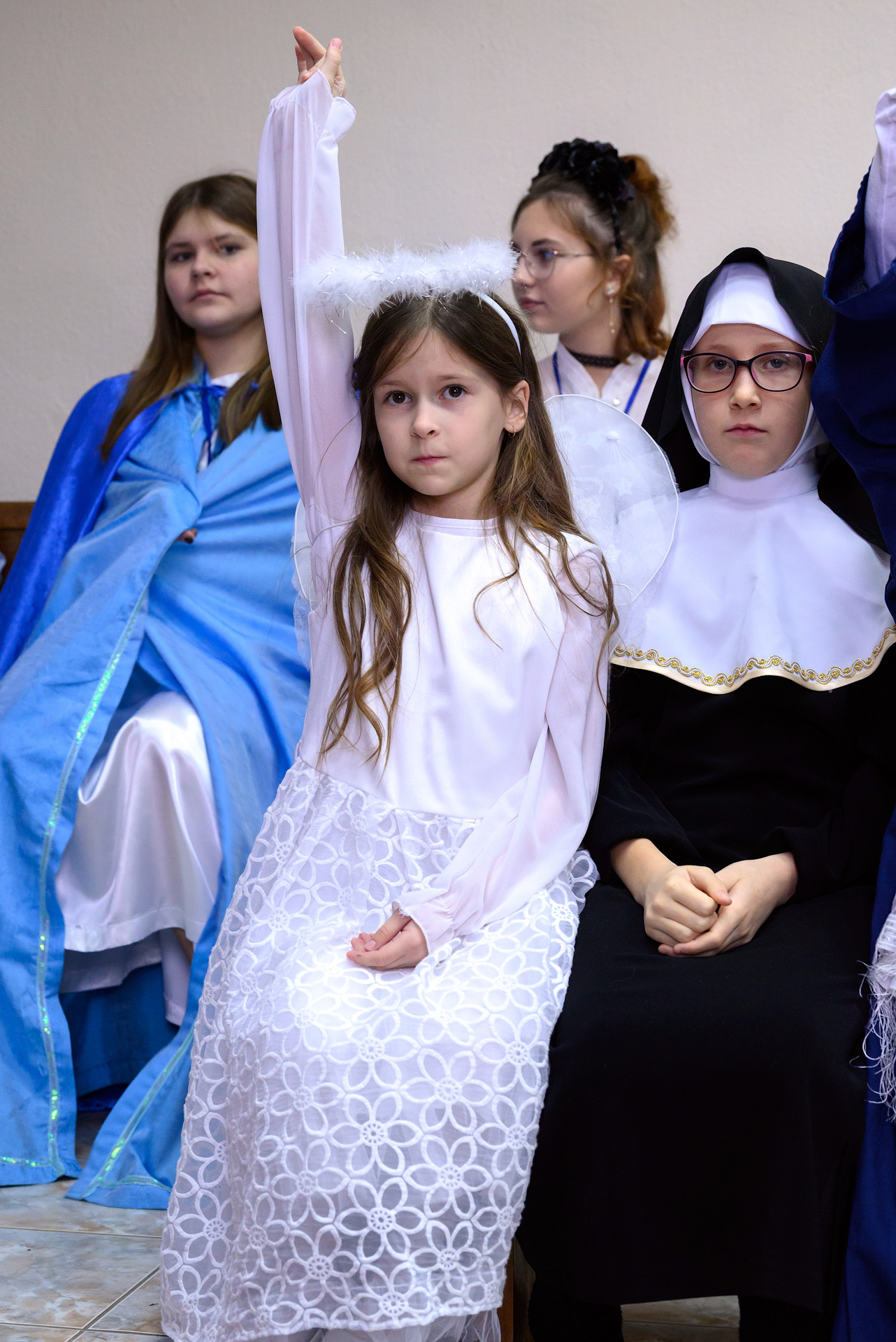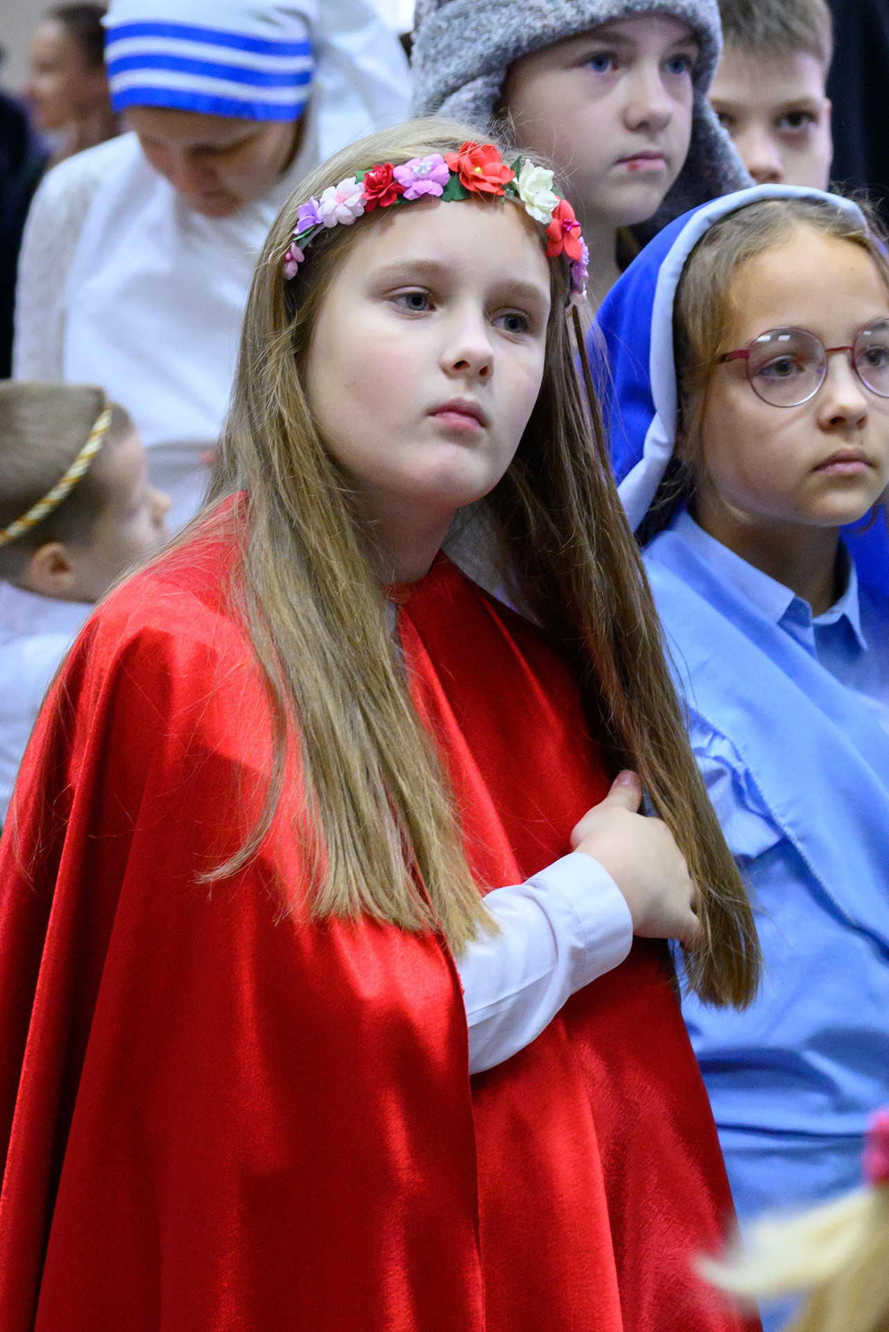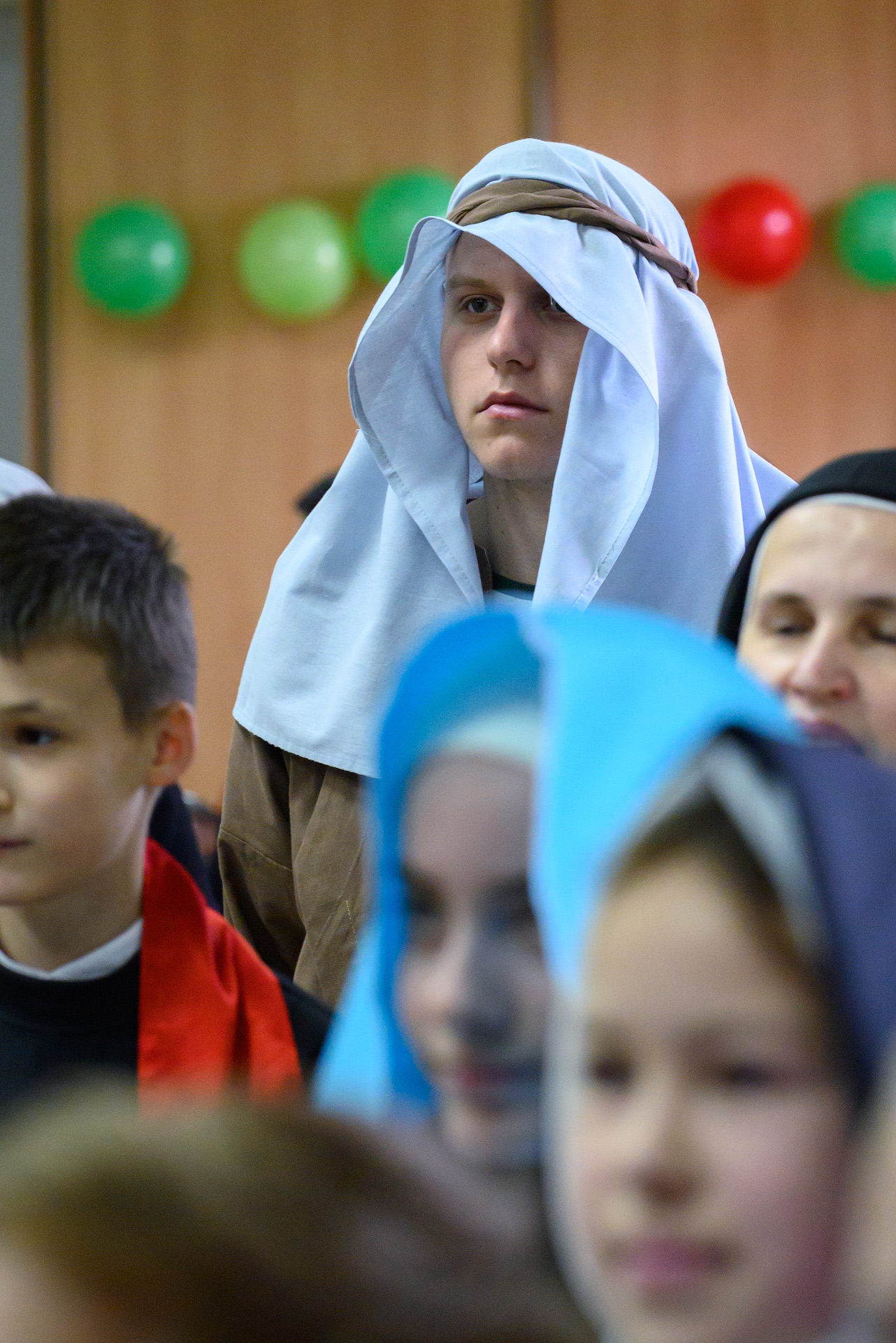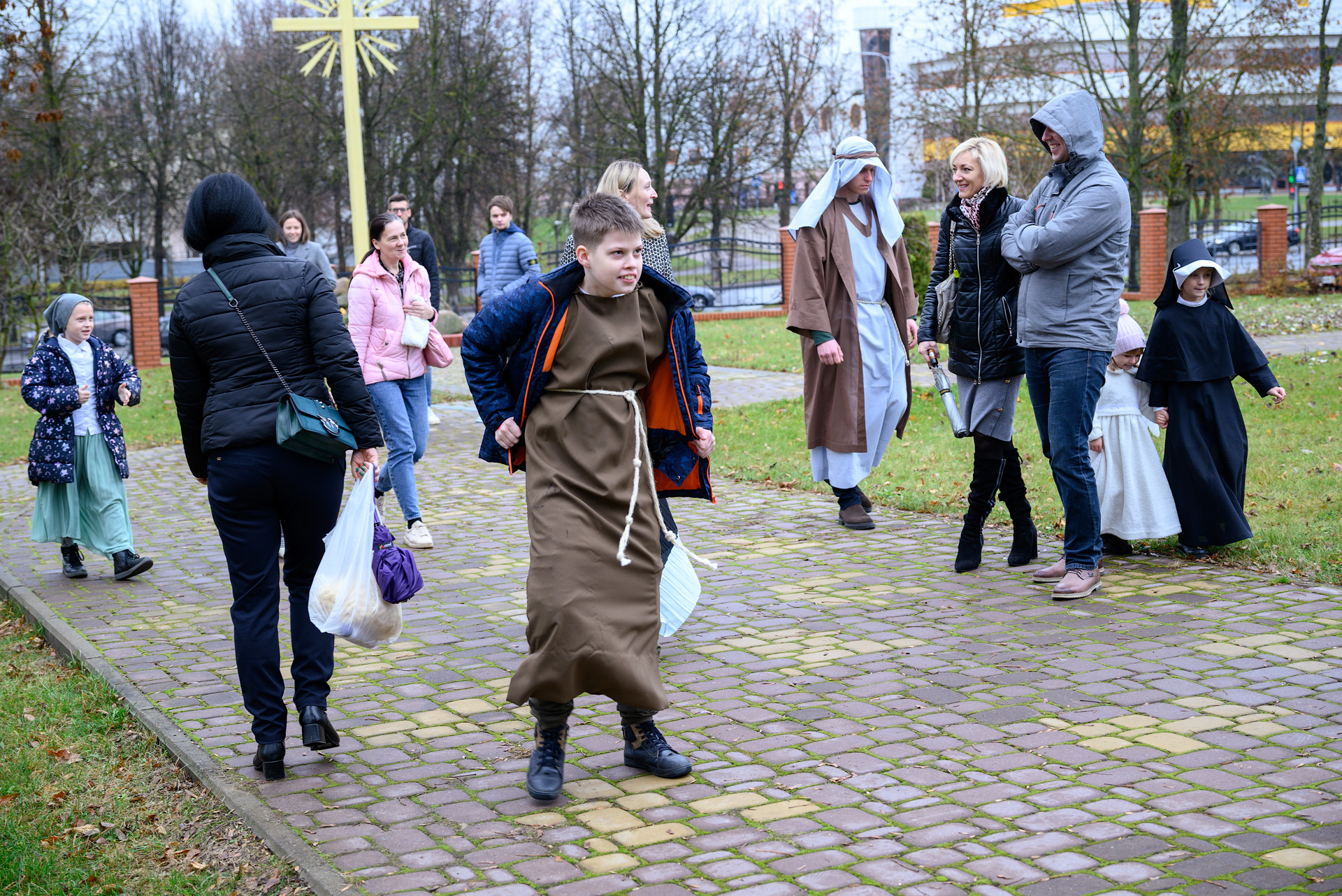 Менавіта з гэтай песні і пачаўся Баль. Як дзеці, так і дарослыя мелі магчымасць прыйсці на свята ў касцюмах Святых, блізкіх ім па духу, якія служаць добрым прыкладам у жыцці. І ведаеце, якіх толькі Святых не прыйшло на свята?! Месца ўсім не хапала! Гэта былі як добра ўсім вядомыя Святыя: Агата, Піо, Тэрэза, Марыя, Юзаф, Юда Тадэвуш, Францішак, Стэфан, Баляслава Лямант, Ян Павел ІІ... Так і Святыя, пра якіх, нават не кожны дарослы хрысціянін чуў: Антоній Ляшчэвіч (росіцкі святы), Фідэль, Жозэфіна Бакіта, Джана Берэта Мола, Марыя Гарэцці, Дамінік Савіо, Схаластыка і Бенядзікт, Феламена... А таксама шматлікія пастушкі і анёлы.