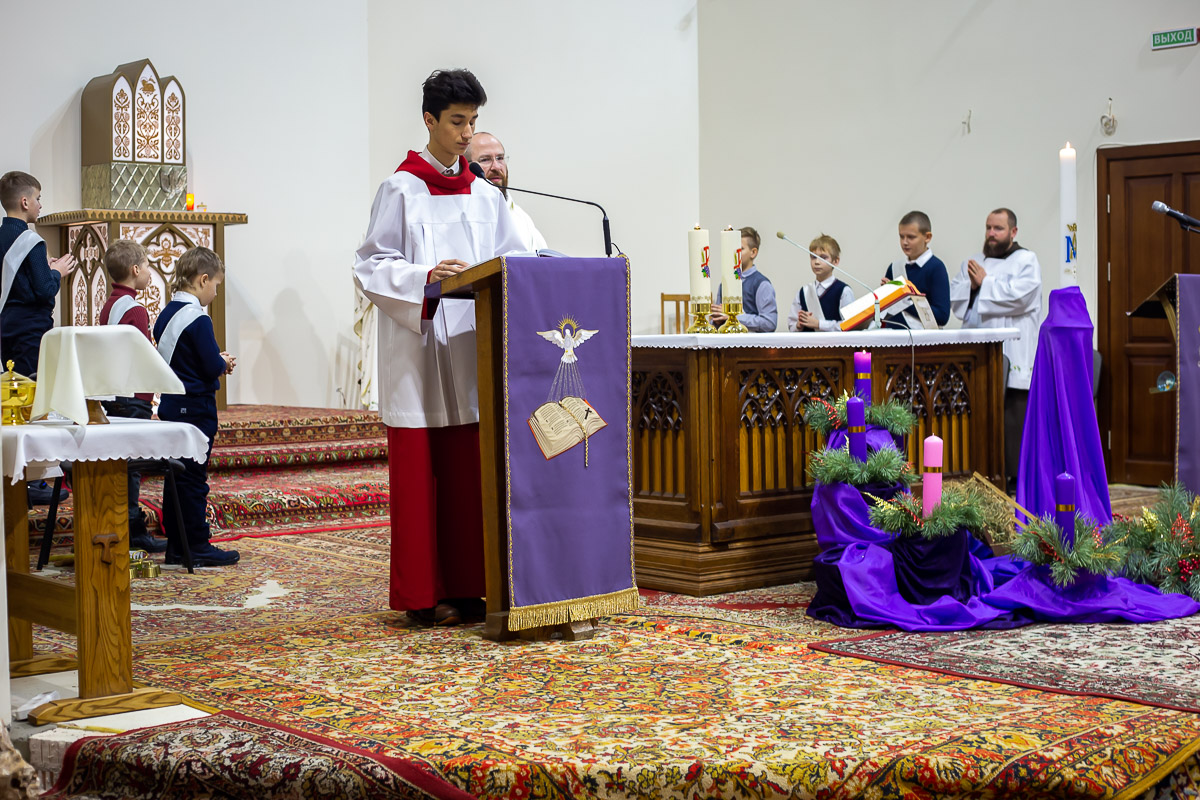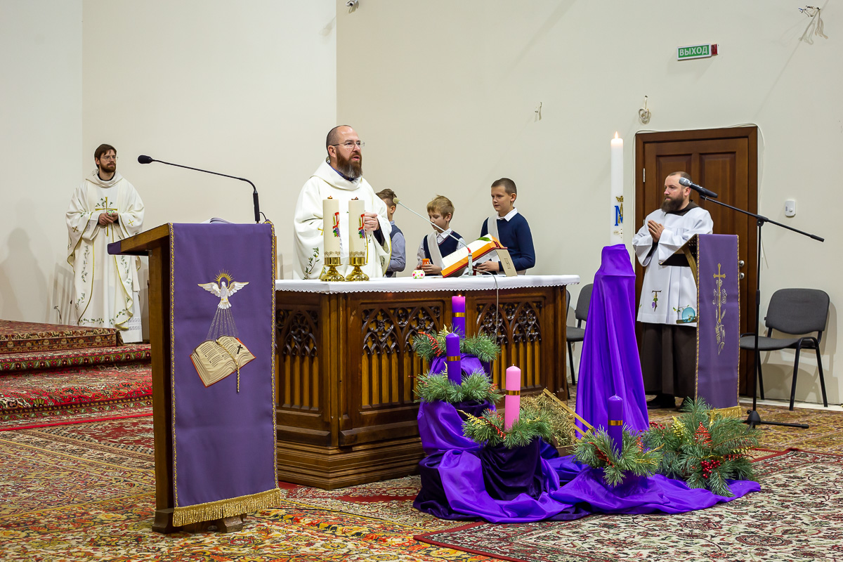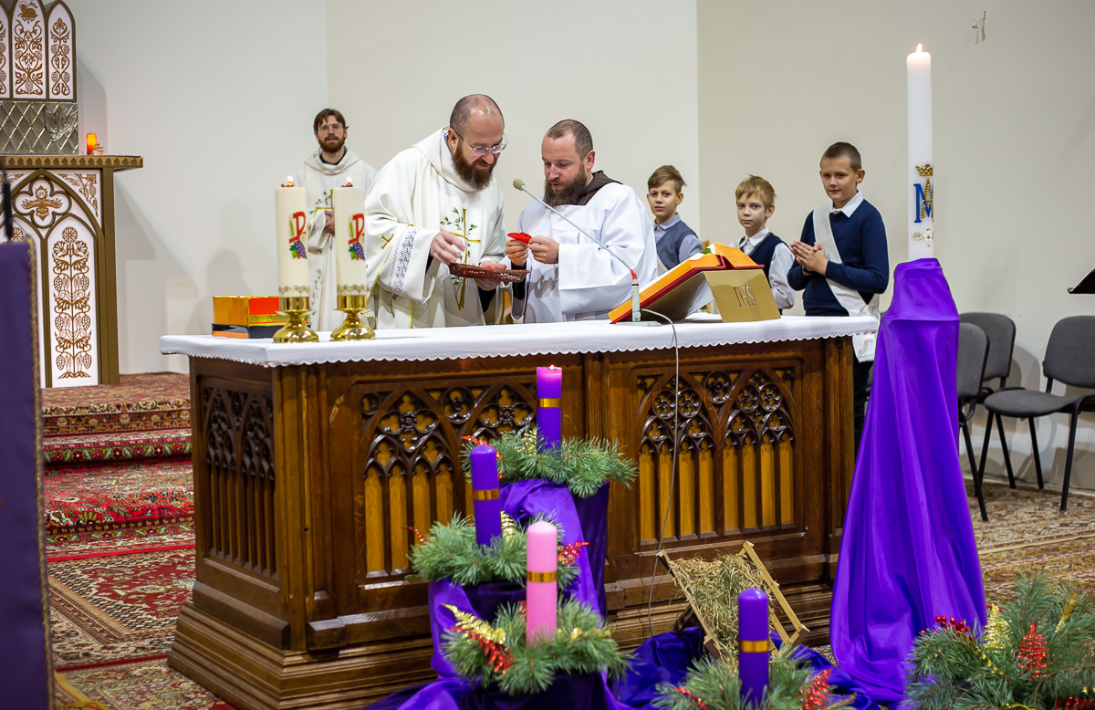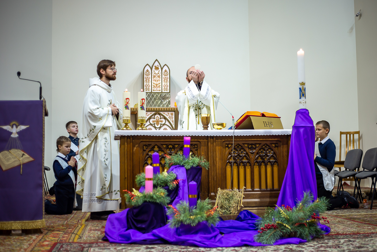 На працягу Адвэнту ў 615 Гадзінкі аб Беззаганным Зачацці Найсвяцейшай Панны Марыі, а пасля Гадзінак, у 645 - Раратняя Імша. Дзяцей чакаем на Раратах у сераду і суботу.