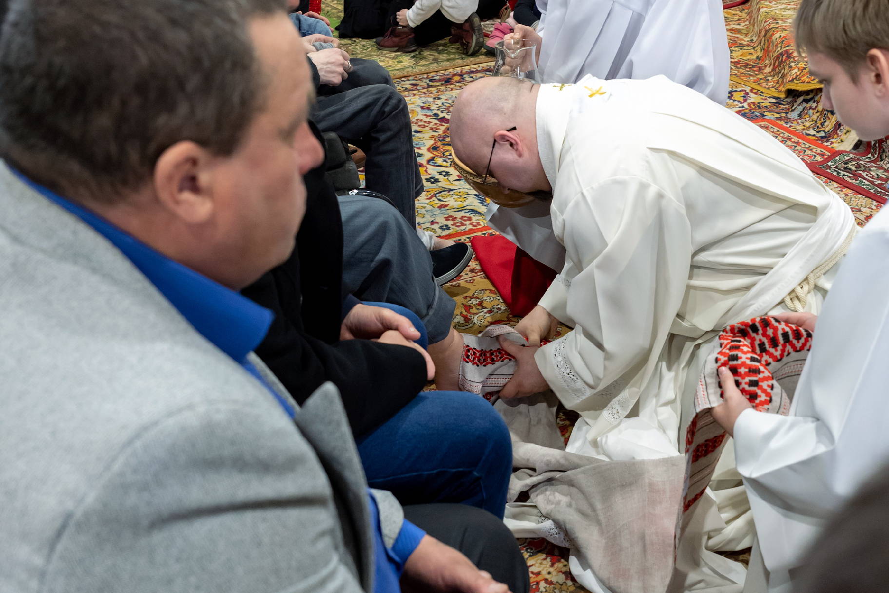 Каб мы былі годнымі сесці за Яго стол і ўдзельнічаць у Яго Вячэры, Езус бярэ на сябе ролю слугі і абмывае нашыя ногі, як і ногі апосталаў. Жэст абмывання ног, як падкрэсліў у гаміліі а. Андрэй Жылевіч,– гэта, па сутнасці, выраз любові да слабых людзей, да тых баязліўцаў і здраднікаў, якімі праз пару гадзін стануць вучні, праява любові да ворагаў. Езус паказвае прыклад любові, якая займае апошняе месца, пакорная, не шукае свайго, “не качае правоў”, дазваляе сябе ўкрыжаваць, здрадзіць, і якая ніколі не прамінае. І мы пакліканы да такой любові. “Новую запаведзь даю вам, каб вы любілі адзін аднаго. Як Я палюбіў вас, так і вы любіце адзін аднаго.” (Ян 13:34)