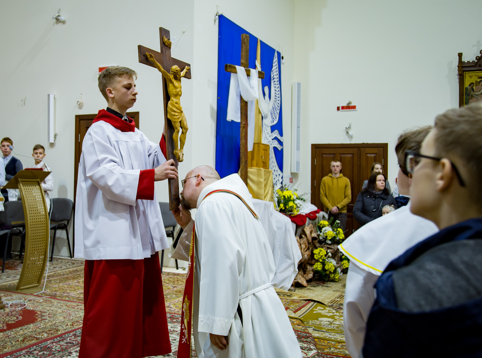 Сэрцам Літургіі Мукі Пана з'яўляецца ўшанаванне Крыжа. Шацунак да крыжа – тое, што вылучае хрысціян. Калі мы яго губляем, мы трацім веру. Аб гэтым засведчыў а. Ігар у гісторыі, якая мела месца ў часы камунізму ў Чэхіі. У той час гэта была вельмі каталіцкая краіна. Вера перашкаджала камуністычным уладам. І яны задумалі эксперымент. На адным заводзе у памяшканні, дзе працаўнікі пераапраналіся, былі зняты ўсе цвікі і кручкі і замест іх развешаны крыжы. Спачатку працаўнікі абураліся, але з цягам часу пачалі вешаць на іх вопратку… Цяпер Чэхія – краіна, у якой мала веруючых.