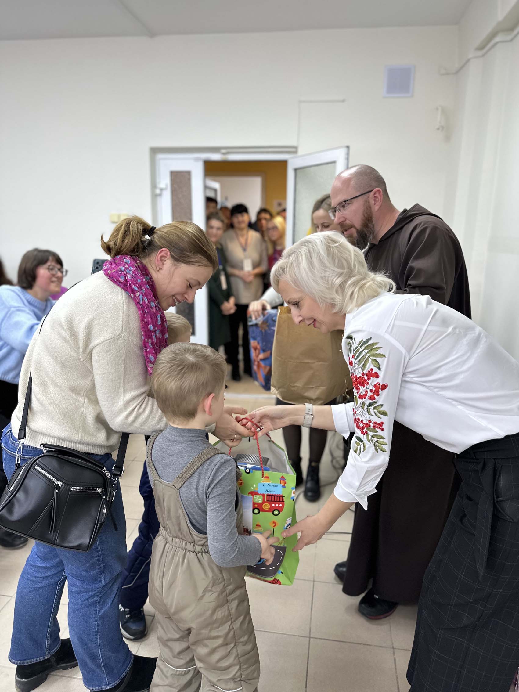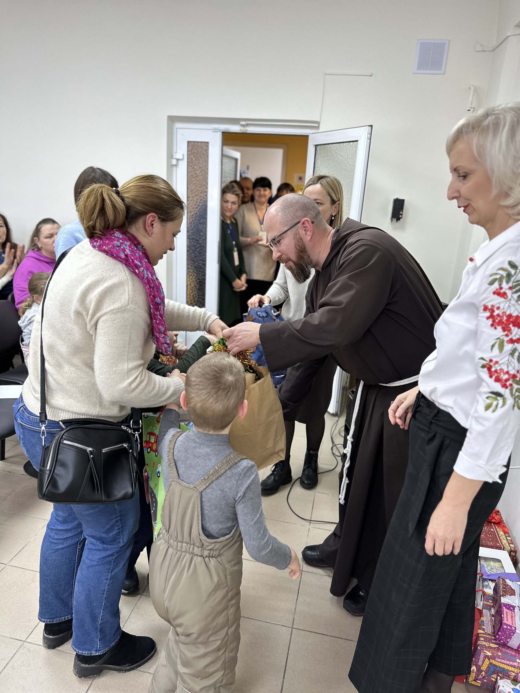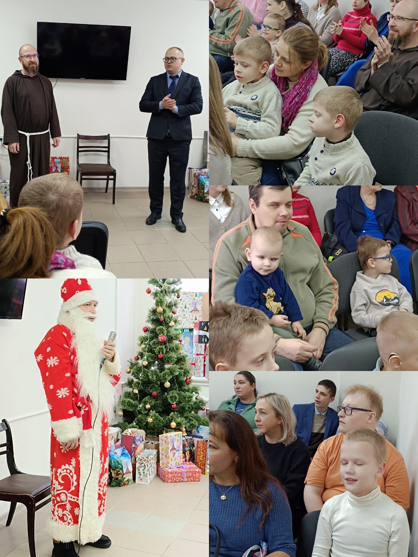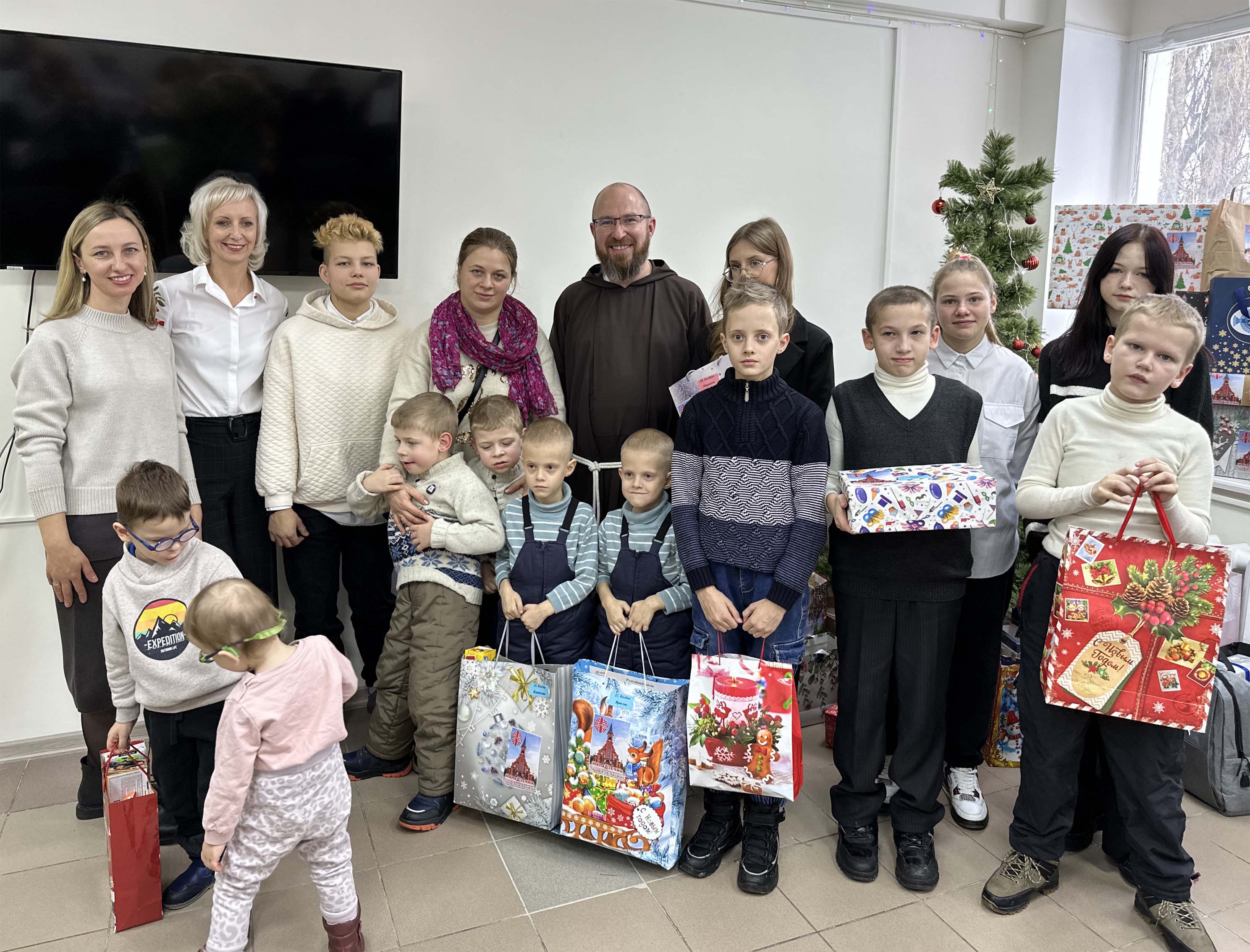 Затым са словамі віншавання і падзякі ад імя прыхаджан парафіі святога Казіміра г. Маладзечна да ўдзельнікаў мерапрыемства звярнуўся брат Андрэй Жылевіч OFMCap. Ён падкрэсліў, што кожны чалавек пакліканы, каб дзяліцца любоўю з бліжнімі і перадаў дзецям падарункі, сабраныя парафіянамі.