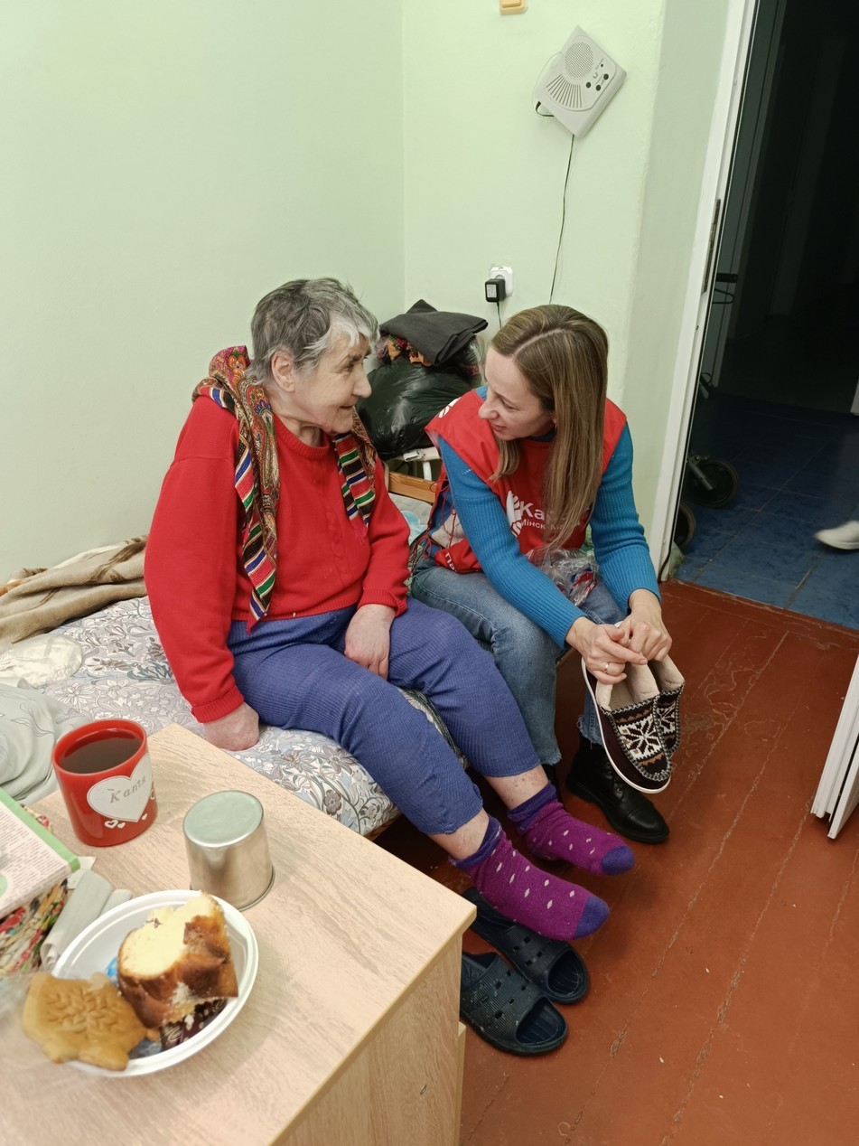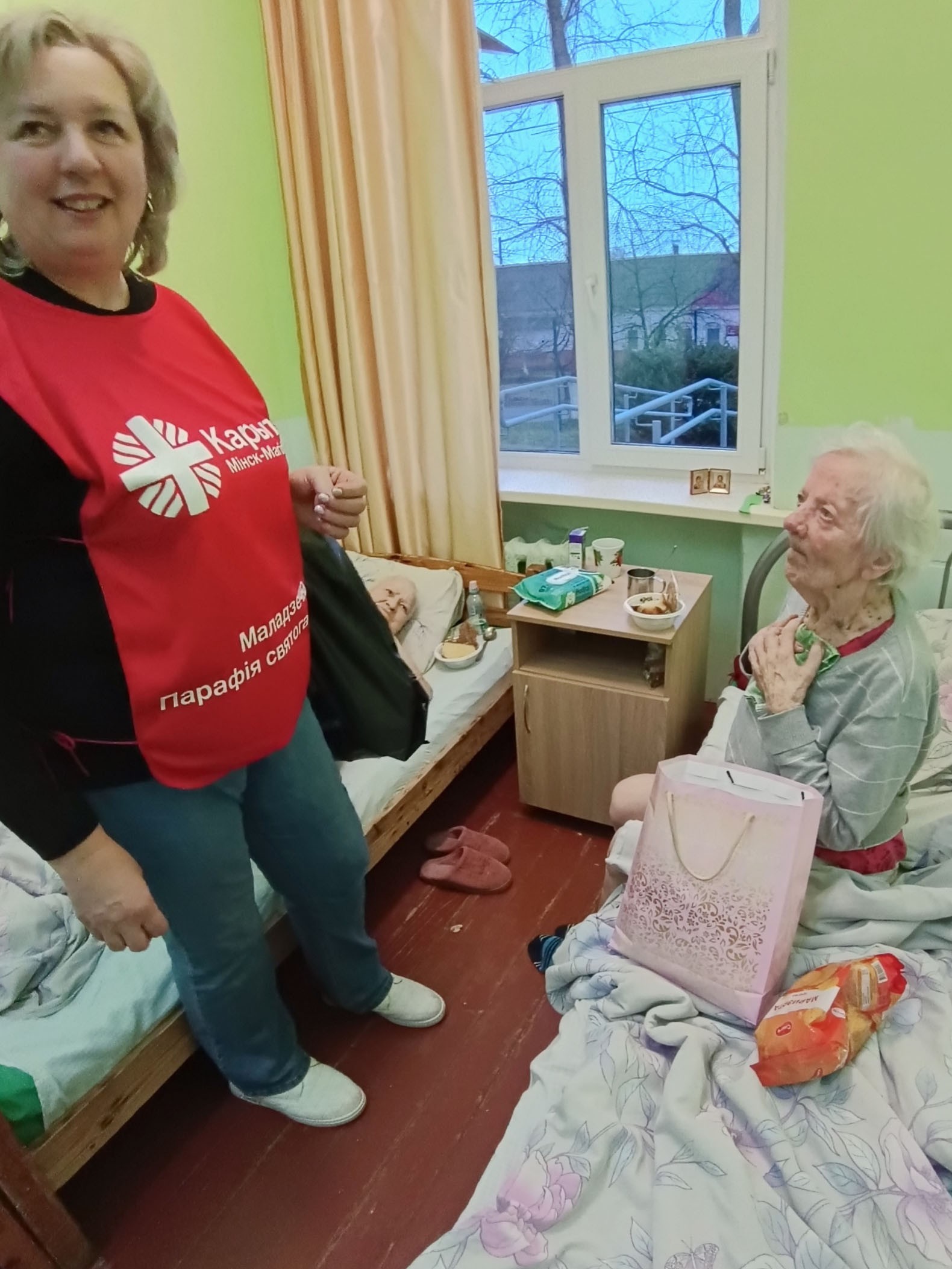 А ўжо 8 снежня, валанцёры, разам з братам Сяргеем Гусарам OFM Cap, адведалі пацыентаў аддзялення сястрынскага дагляду ў Беразінскім (Маладзечанскі раён).