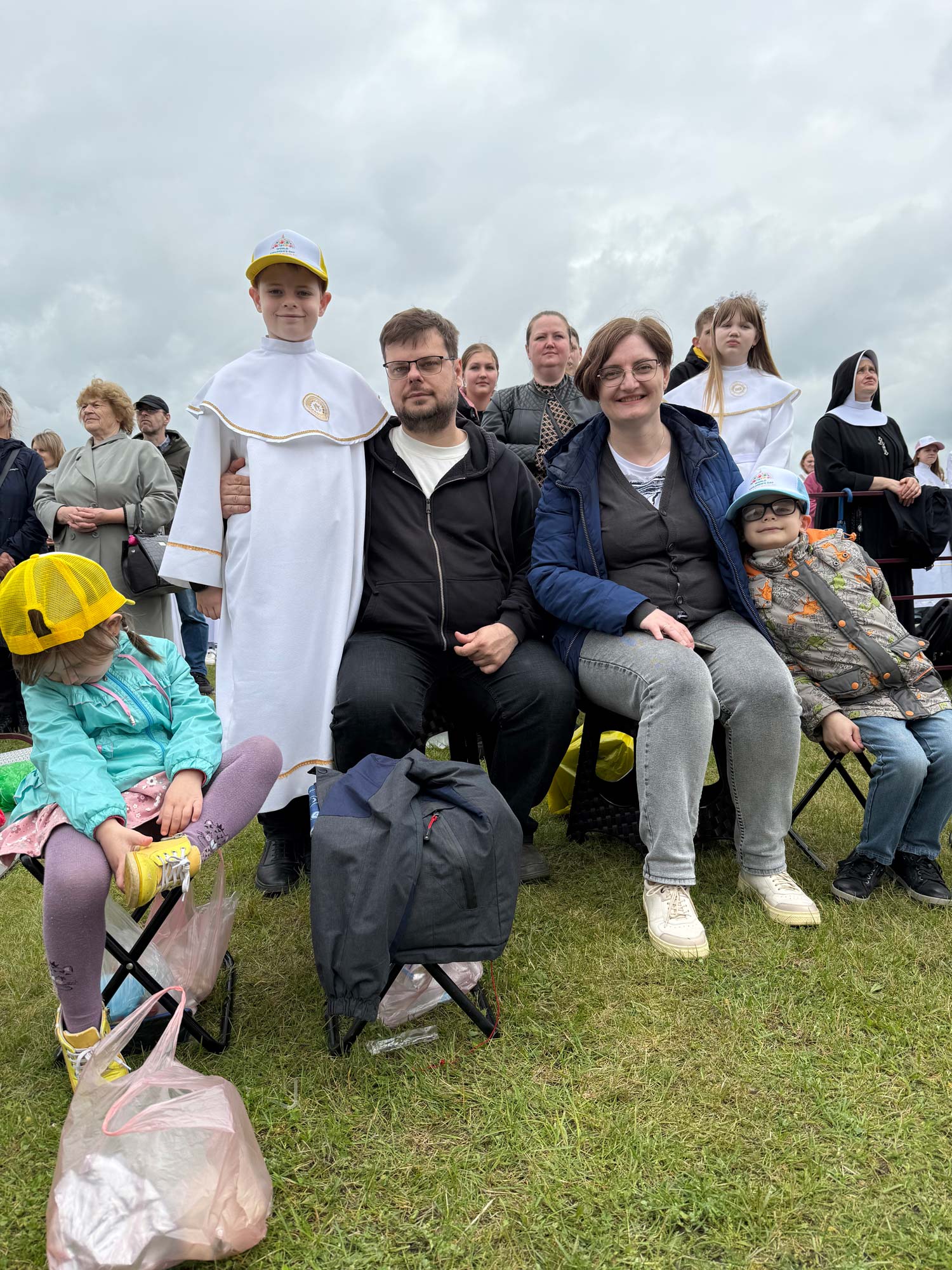 Кароткачасовы дождж падчас Святой Імшы выклікаў усмешкі на тварах пілігрымаў. Прыемна было назіраць, як дзеці і дарослыя клапаціліся адзін пра аднаго, запрашаючы пад свае парасоны. Сонейка, якое хутка абагрэла, абсушыла, дало надзею вернікам на працяг святочнага мерапрыемства.