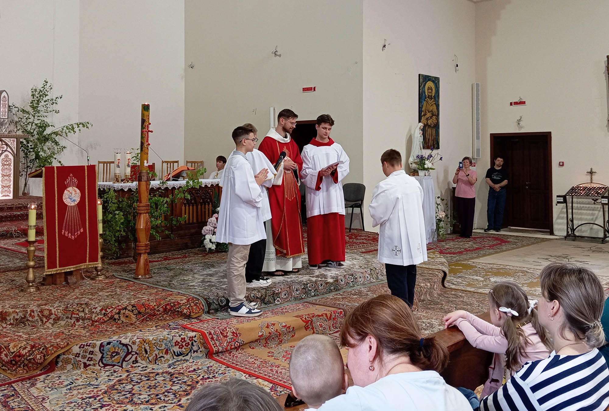 У нядзелю 8 чэрвеня Касцёл святкаваў урачыстасць Спаслання Духа Святога, або Пяцідзясятніцы, якая па значнасці для ўсіх хрысціянаў адпавядае такім святам, як Божае Нараджэнне і Вялікдзень. Гэта дзень, калі вучні Хрыста атрымалі найбольшы дар, які толькі маглі атрымаць ад Бога, - дар Святога Духа. Гэты асаблівы дзень Касцёл лічыць Днём свайго нараджэння. Таксама асаблівай гэтая нядзеля стала для Паўла Роўды і яго бацькоў, таму што падчас св. Імшы а 12-00 хлопец быў прыняты ў міністранты.