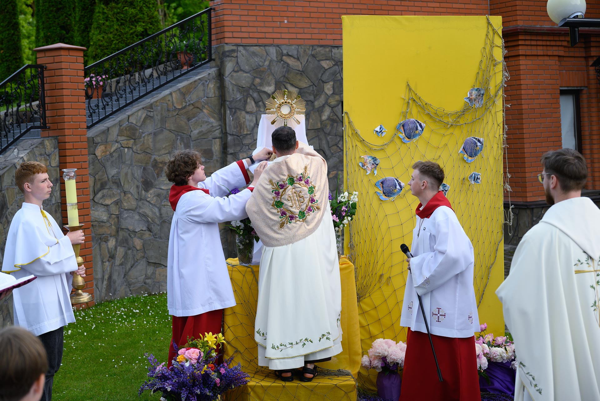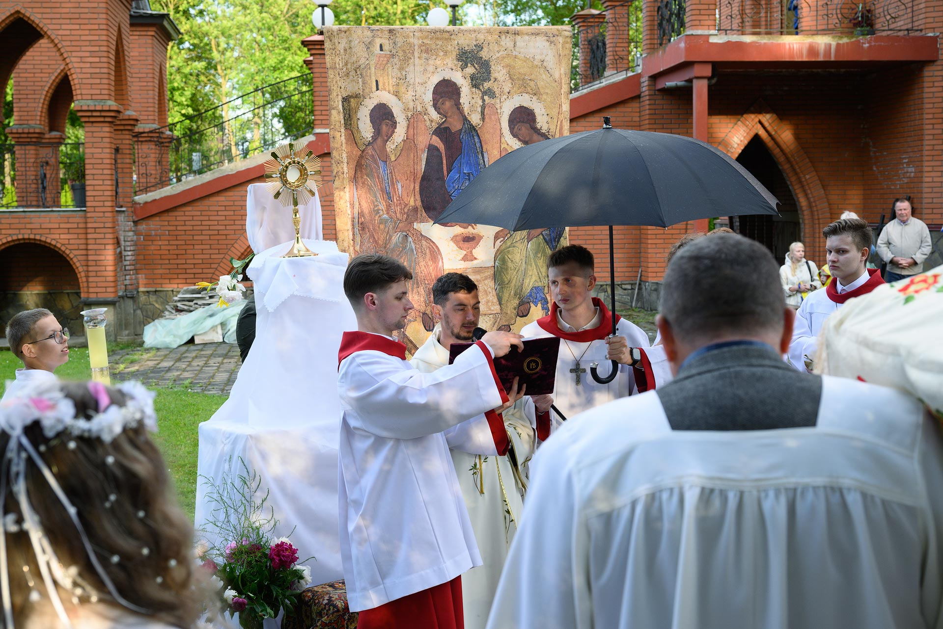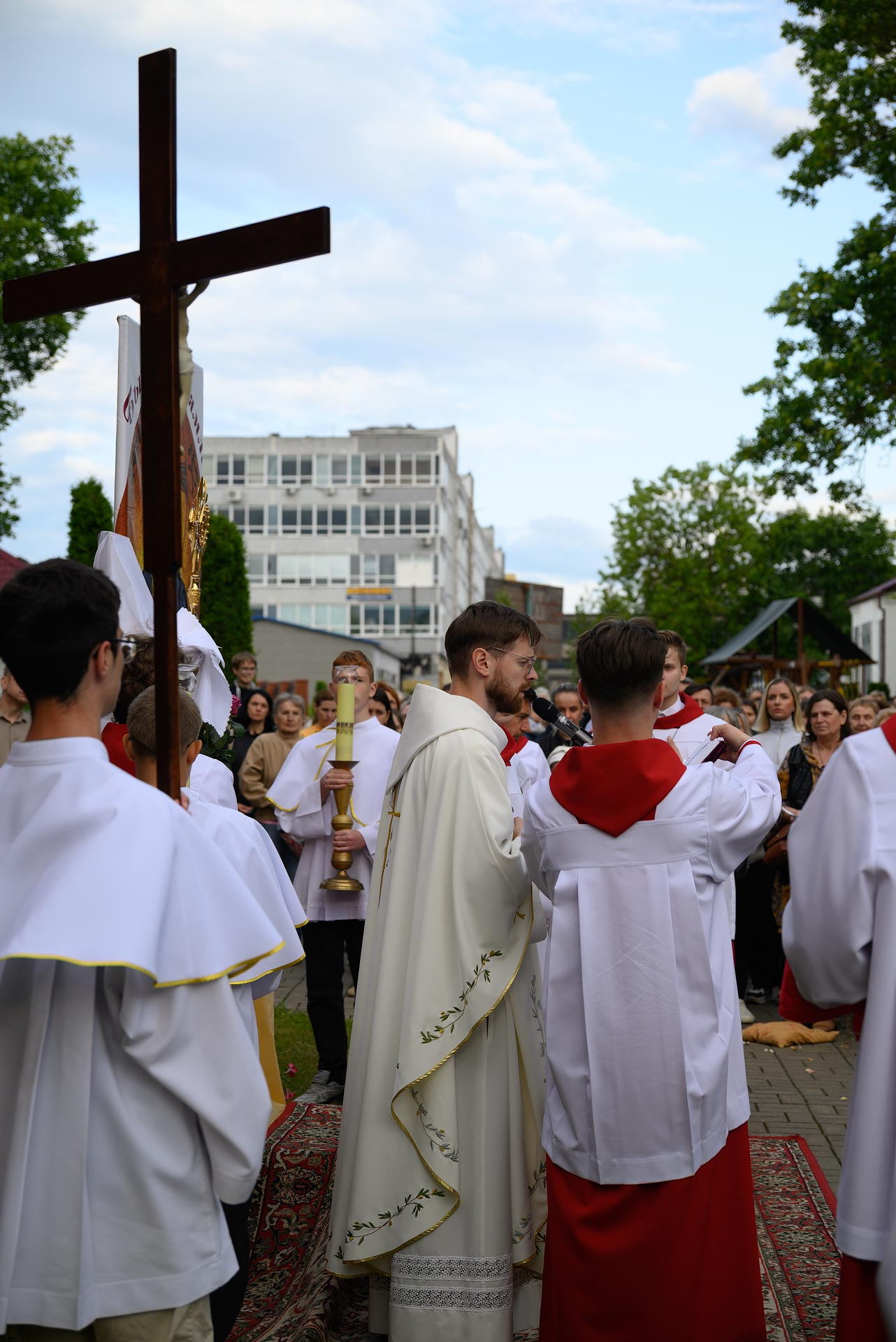 Падчас Імшы дзьмуў моцны вецер і ліў дождж, таму было невядома, ці адбудзецца Эўхарыстычная працэсія. Аднак пад канец літургіі дождж спыніўся і выглянула сонейка (бр. Уладзіслаў падазрае, што гэта адбылося дзякуючы веры парафіянаў :). Алтары, якія упрыгожвалі прадстаўнікі розных парафіяльных супольнасцяў, вытрымалі выпрабаванні і ўстаялі. Таму ўрачыстая працэсія адбылася. Вернікі ўслед за Жывым Богам у Найсвяцейшым Сакрамэнце прайшлі вакол касцёла, спыняючыся каля чатырох алтароў, каб узнесці Богу малітву праслаўлення і прасіць аб бласлаўленні і абароне ад зла для ўсіх жыхароў горада.