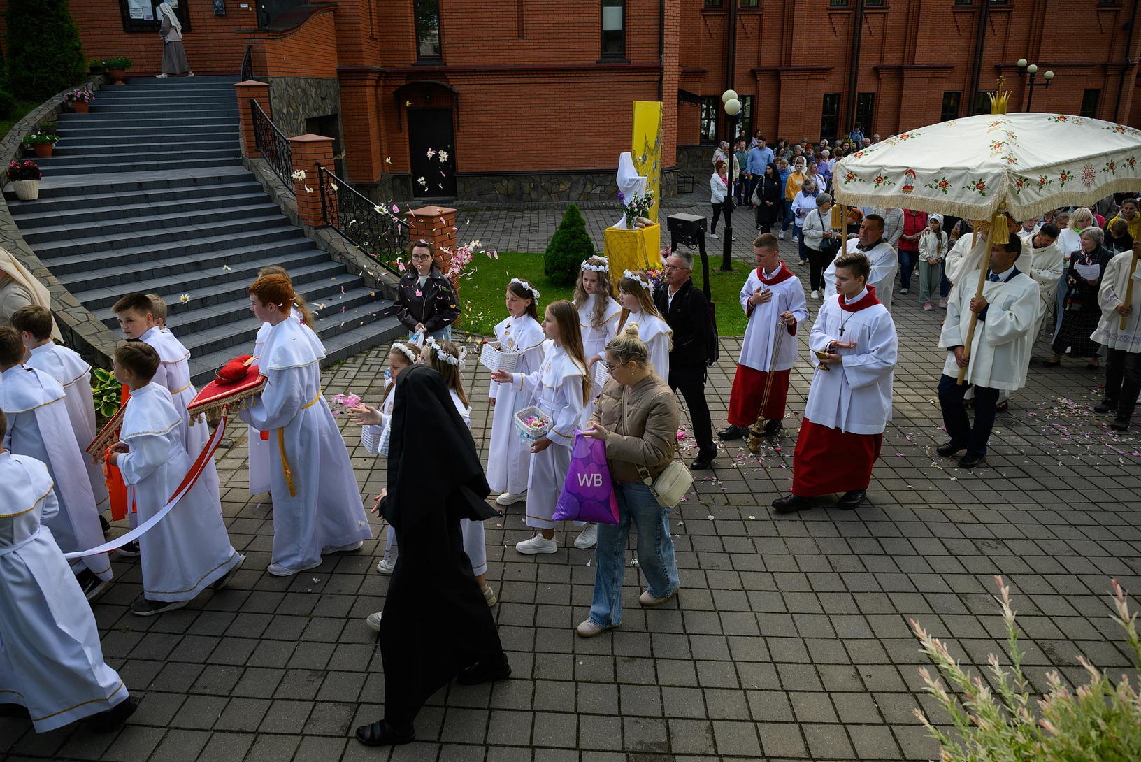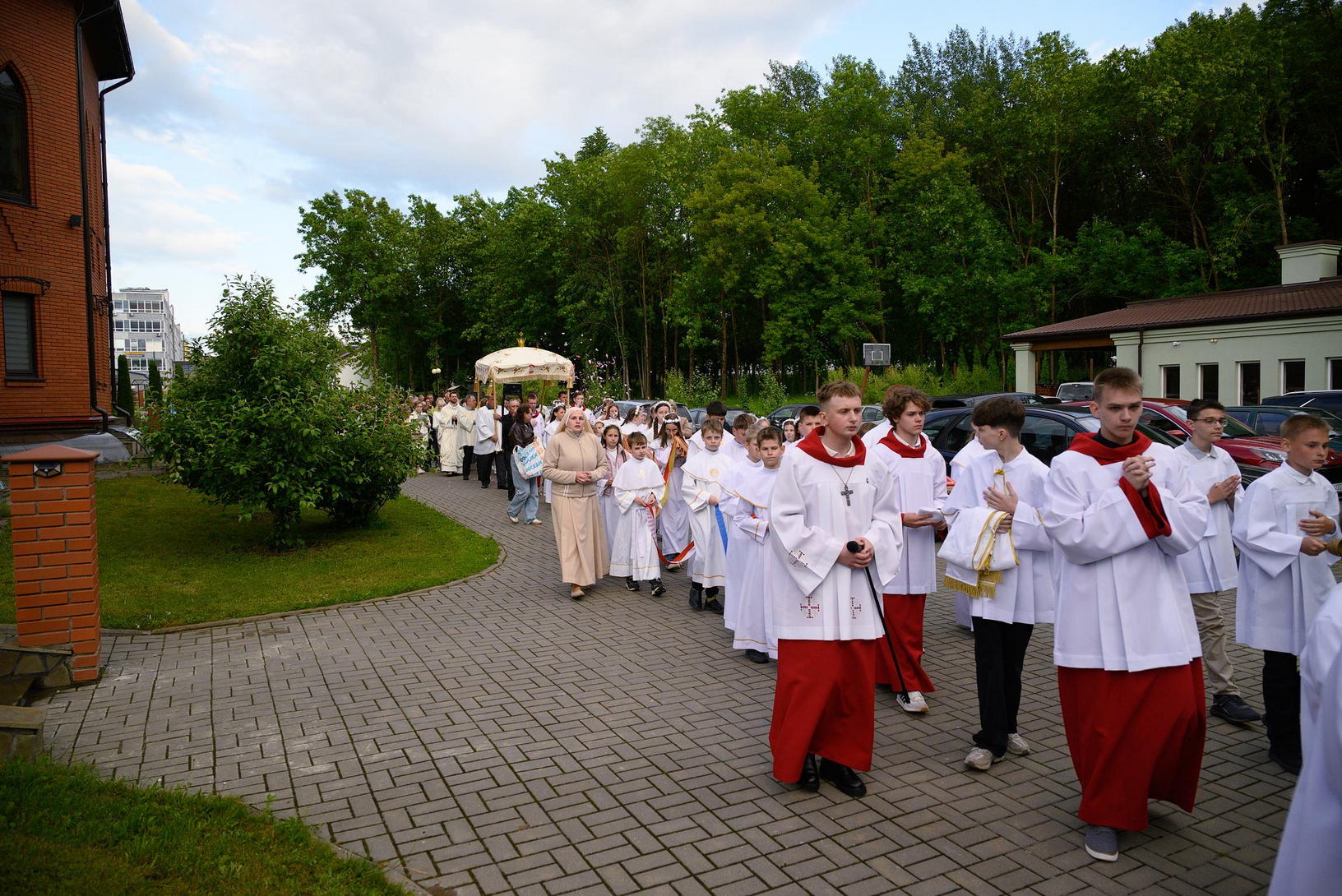 У чацвер 22 чэрвеня, у дзень, калі Касцёл адзначае ўрачыстасць Цела і Крыві Пана нашага Езуса Хрыста, вернікі нашай парафіі, не зважаючы на дажджлівае надвор'е, сабраліся на вячэрняй святой Імшы, каб падзякаваць Богу за найвялікшы дар - дар Яго самога ў Найсвяцейшым Сакрамэнце.
