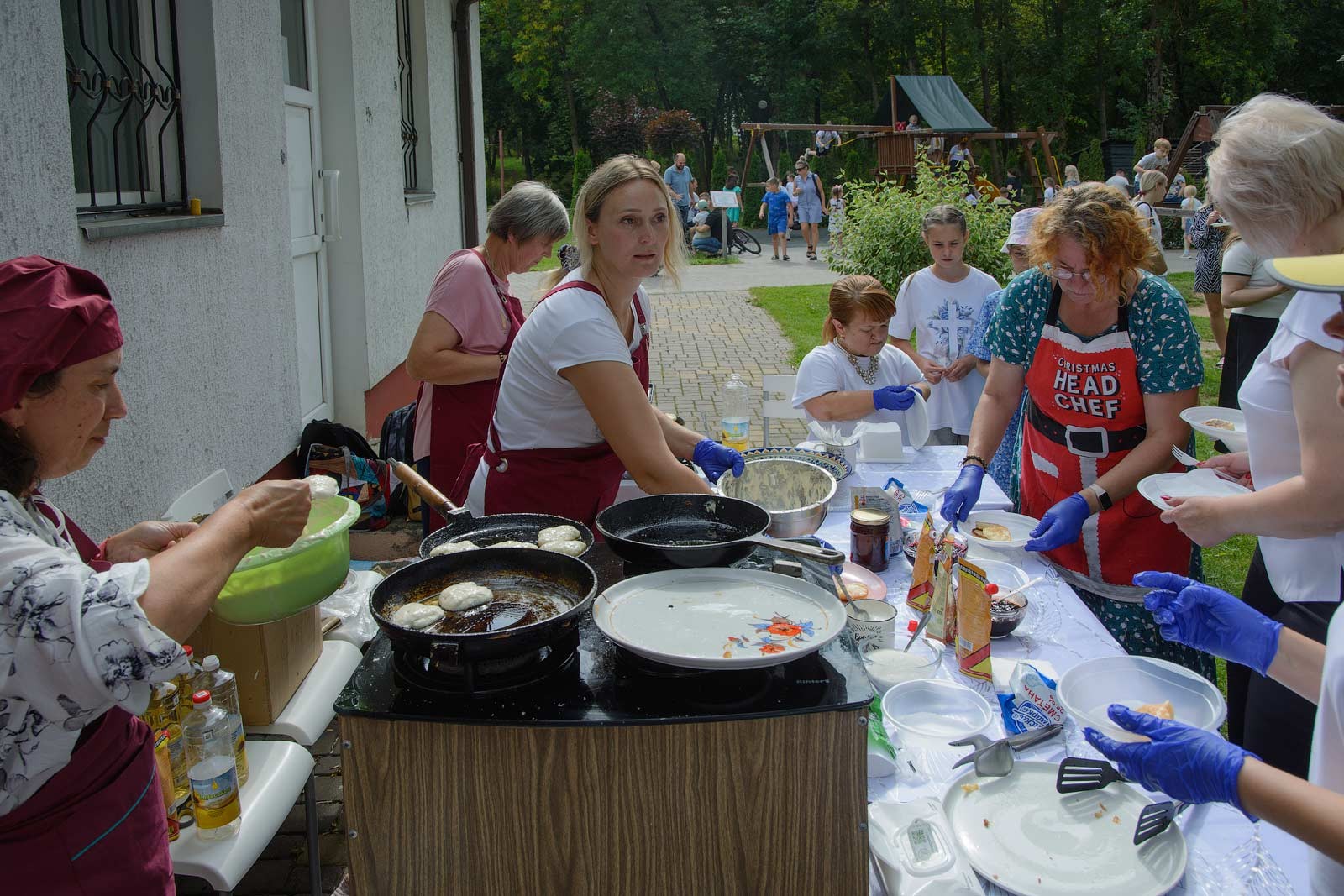 У нашай парафіі не пытаюцца: "За чым такія чэргі?" Усе добра ведаюць, што ніводнае парафіяльнае свята ўжо не абыходзіцца без смачнай цукровай ваты і аладкаў. А ў нядзелю 31 жніўня была асаблівая нагода: пасля св. Імшы а 12 гадзіне, падчас якой пробашч нашай парафіі бр. Уладзіслаў удзяліў блаславенне на новы навучальны год, усе сабраліся каля капліцы, каб святкаваць. Таму валанцёры парафіяльнага Caritas у рэжыме non-stop старанна гатавалі прысмакі для нашых вучняў, настаўнікаў, катэхетаў, бацькоў, бабуль і дзядуль.