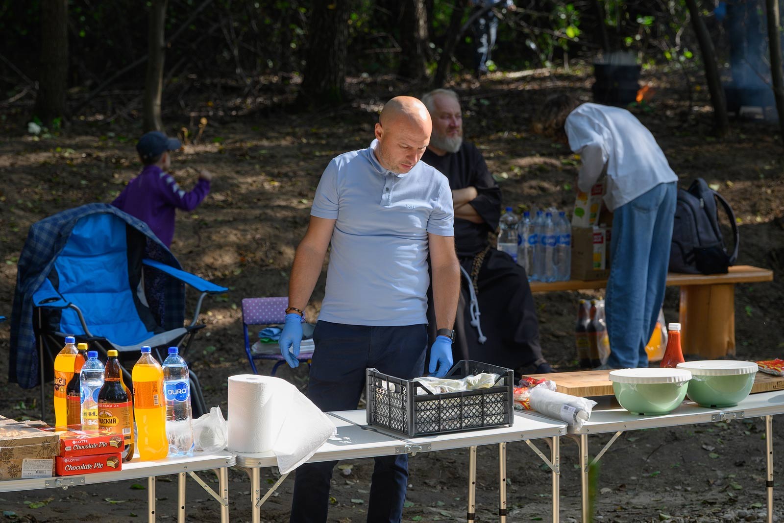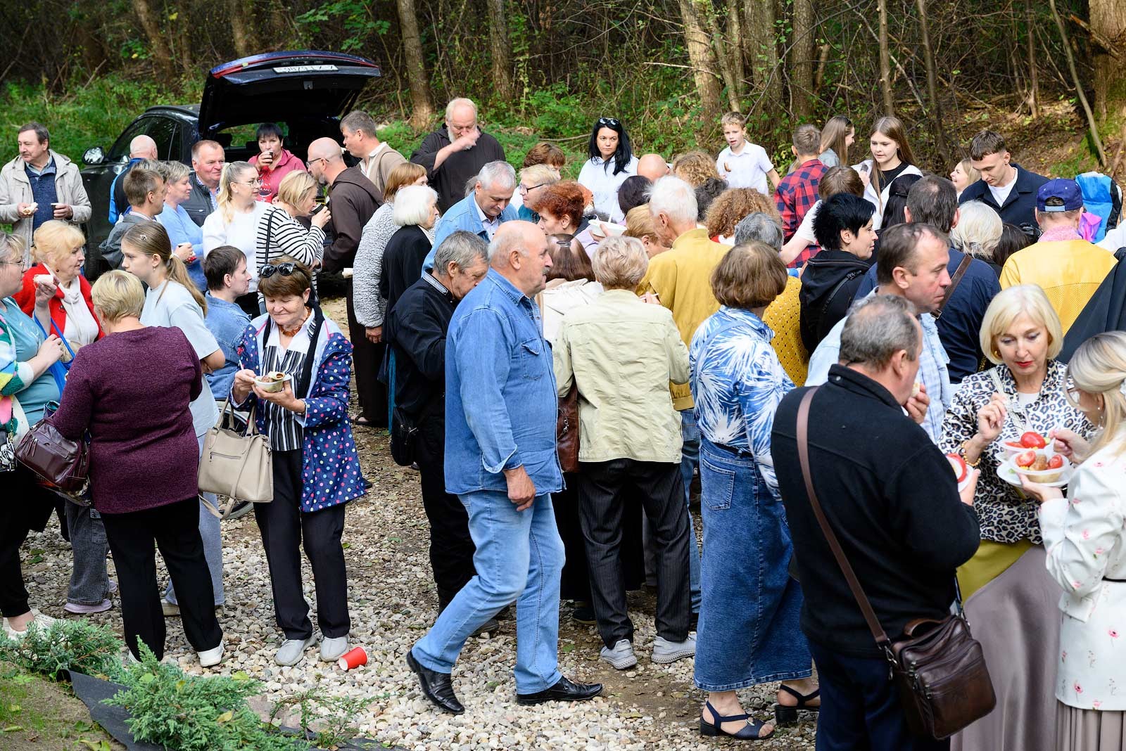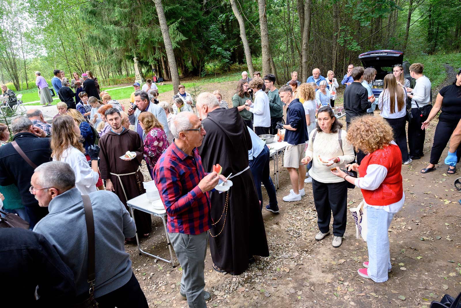 А далей усе перайшлі да самай смачнай – гастранамічнай часткі святкавання. Дым з водарам смажаных каўбасак ужо даўно распаўсюджваўся над прысутнымі, наганяў апетыт, а можа нават і прыспешваў малітву. І дзе яшчэ, як не ў такіх палявых умовах, найбольш адчуваецца блізкасць паміж людзьмі, калі і біскуп, і дзіця, і бабуля стаяць побач, смакуюць пачастунак і размаўляюць?!