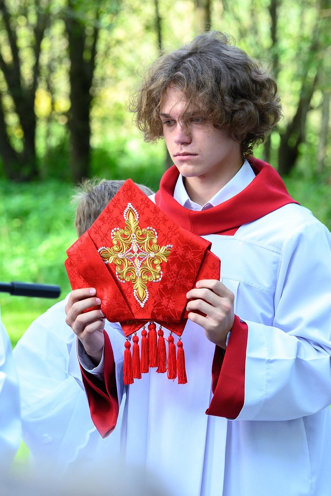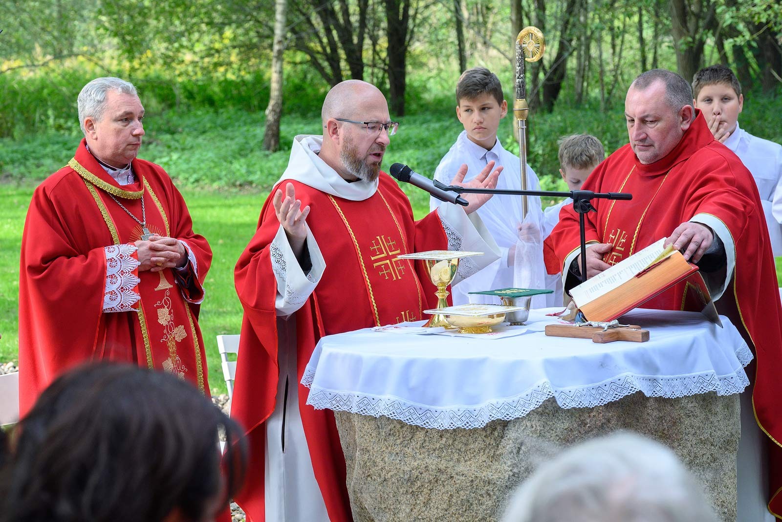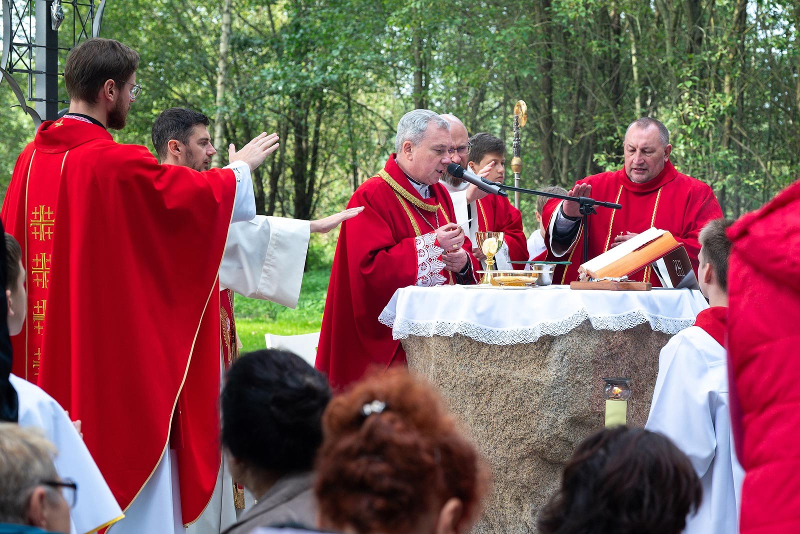 Напачатку святой Імшы Яго Эксцэленцыя асвяціў новы крыж і палявы алтар.