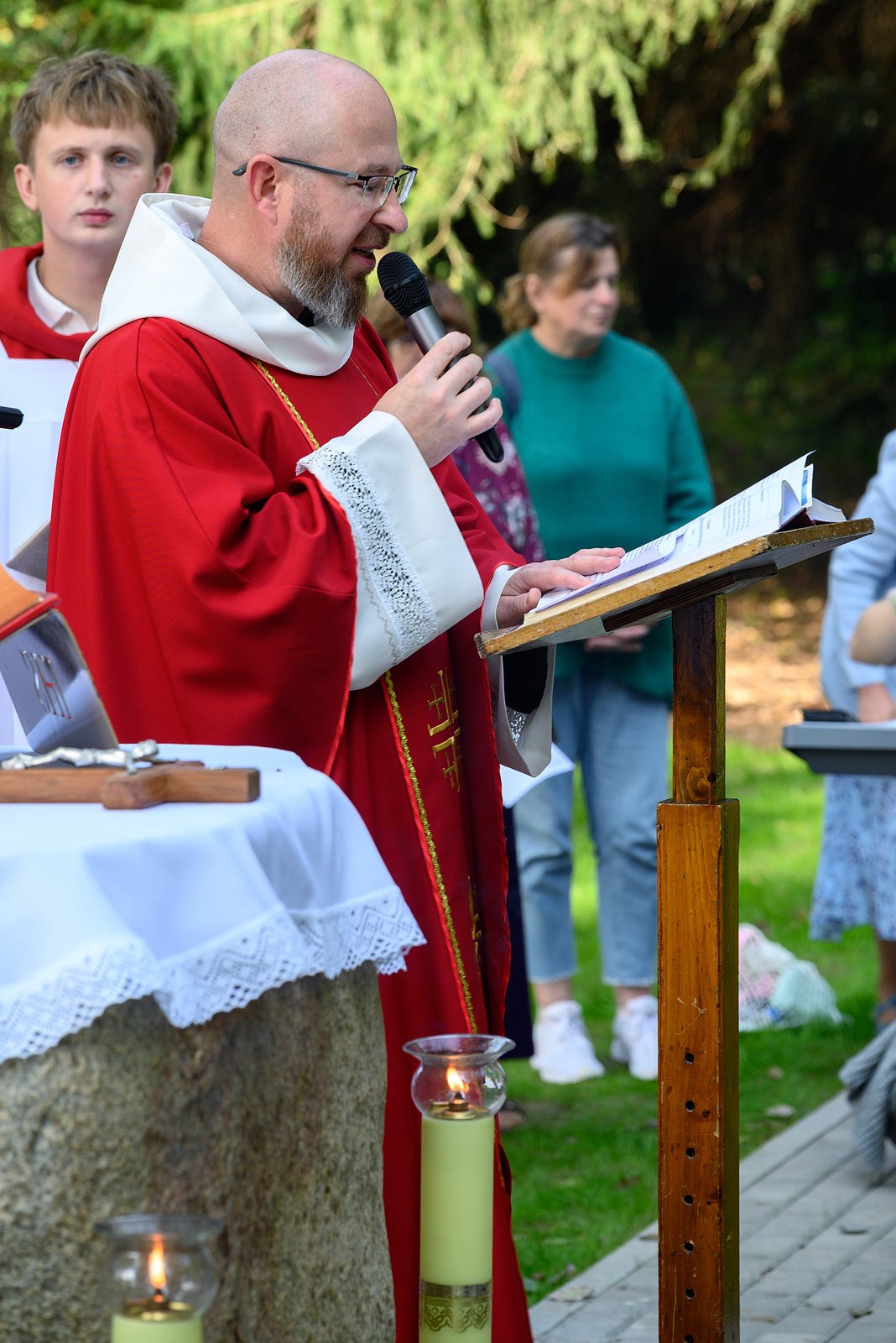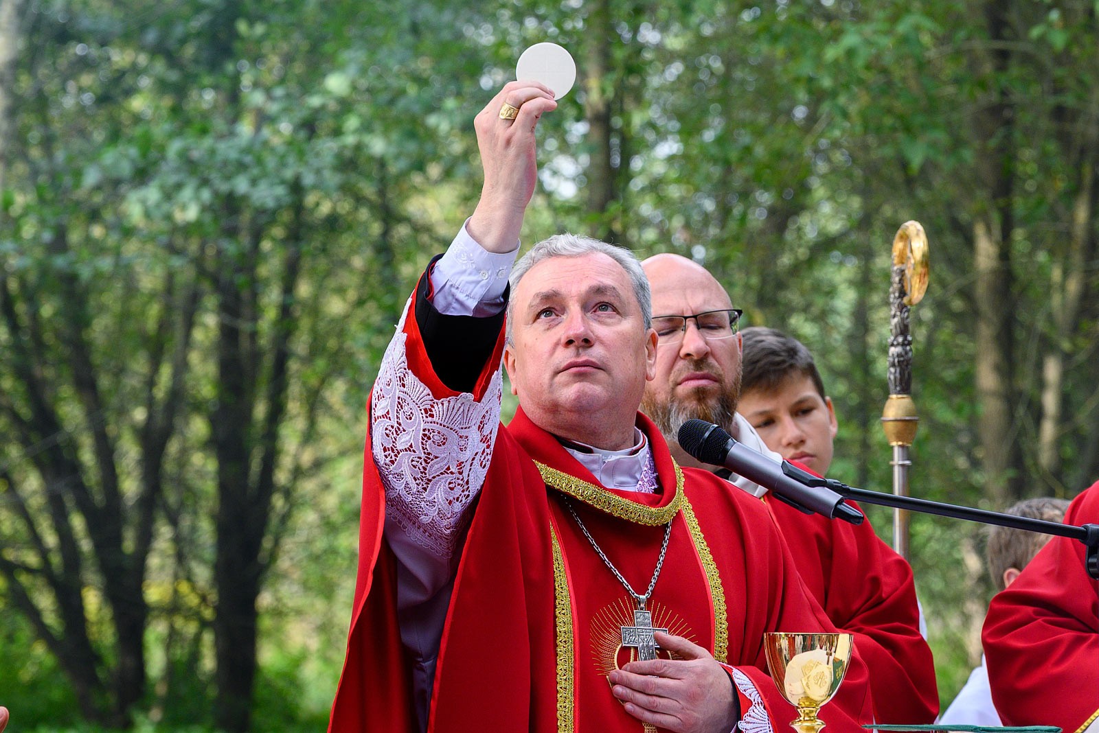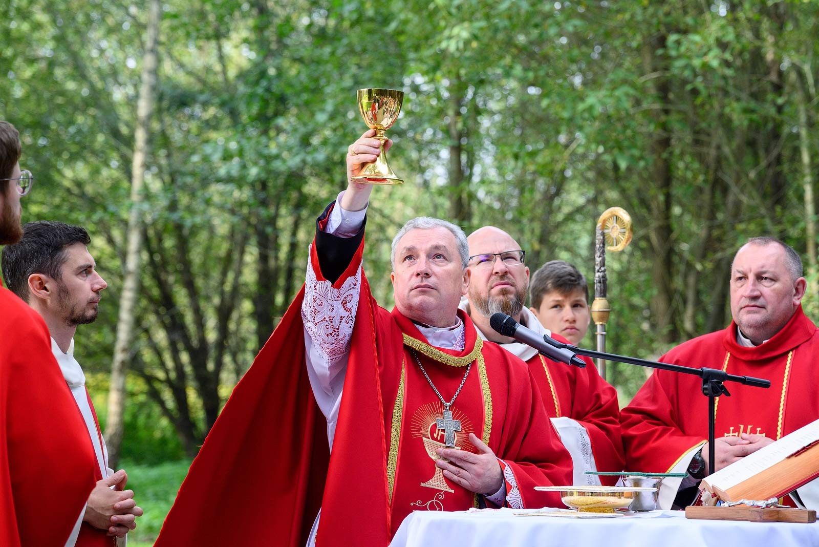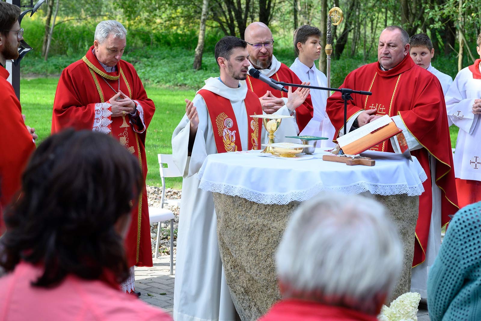 Напачатку святой Імшы Яго Эксцэленцыя асвяціў новы крыж і палявы алтар.