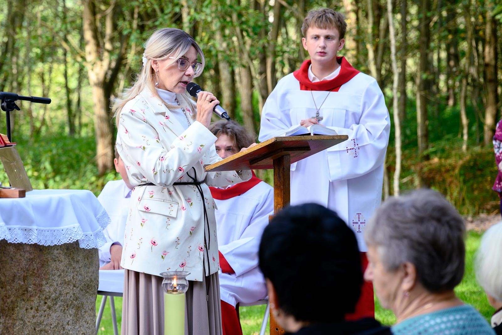 “Тое месца, дзе амаль 100 гадоў назад, узносілі свае малітвы, просьбы, падзякі да Пана Бога зноў ажыло, зноў напоўнілася не толькі малітвай, але і Верай, Надзеяй, Любоўю! Мы ўбачылі прыступкі і абрысы касцёла, мы ўявілі, як ён выглядаў унутры, узгадалі святых, скульптуры якіх былі ў касцёле, і святароў, якія тут служылі… У першы дзень на працягу амаль 8 гадзін мы ачышчалі падмурак і ўнутраную частку касцёла, высякалі маладыя парасткі і сухастой, вызвалялі ад галля і смецця пахаванні... Збіраліся мы на гэтым месцы 9 разоў!.. І сёння сярод нас тут прысутнічаюць Героі, якія ўсе гэтыя 9 разоў былі тут! Кожны раз далучаліся таксама і новыя валанцёры розных узростаў: самаму маленькаму з іх – 6 гадоў, а самаму старэйшаму – 66. Разам мы заклалі Алею Надзеі - радок маладзенькіх елачак, якіх выпадкова аказалася 33 (ці не сімвалічна?!). Гэта сімвал нашай веры і адзінства, дзе кожны наш крок нагадвае, што мы не сам-насам, з намі – Бог. Там, дзе людзі прыходзяць з адкрытымі сэрцамі, узнікае сапраўдная сіла супольнасці: “…бо дзе двое альбо трое сабраныя ў імя Маё, там Я сярод іх” (Мц 18:20 ). І гэта адчувалася на працягу ўсіх нашых сустрэч – у кожным позірку, у кожным прывітанні, у кожнай працягнутай руцэ, усмешцы. І надвор’е нам заўсёды спрыяла: суседнія населеныя пункты залівала, а ў нас – ні кропелькі дажджу і нават сонейка выглядвала! Ці гэта не цуды?!
