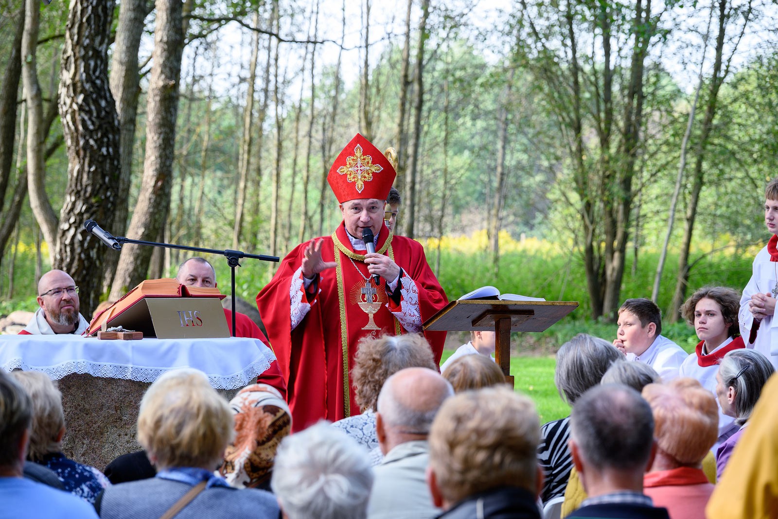 Напрыканцы літургіі Уладыка падзякаваў усім, хто прычыніўся да добраўпарадкавання гэтай тэрыторыі, да захавання гэтага кавалачка нашай гісторыі і пажадаў удзельнікам, каб гэты праект быў не апошні, бо "такія месцы, дзе адкрываюцца цікавыя моманты гісторыі нашага краю, - гэта наша багацце". Як заўсёды, Уладыка падзякаваў літургічнай службе, у параўнанні з якой у Ватыкане міністранты служаць “чуць-чуць горш”, а таксама хору за ўпрыгожванне літургіі спевам.