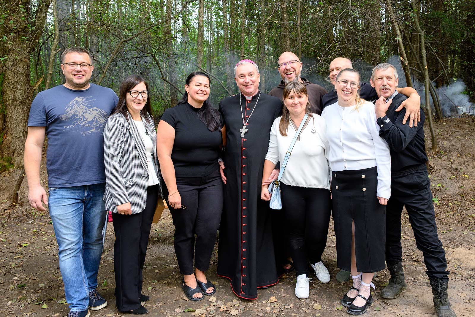Дарагія мае працаўнікі, сябры! Хачу ад усяго сэрца падзякаваць кожнаму з вас за вашу працу, дапамогу і падтрымку! Вы прыехалі ў Гарадок не толькі з інструментамі, але і з вялікім сэрцам, з жаданнем зрабіць нешта добрае і важнае для гэтага Святога месца. І ўсё задуманае атрымалася! Нават больш таго: вашы рукі і сэрца, ваша любоў і ваш час зрабілі гэта месца непаўторным месцам супакою, малітвы і сілы, а праца стала сапраўдным падарункам Богу, цяперашнім вернікам і будучым пакаленням!”