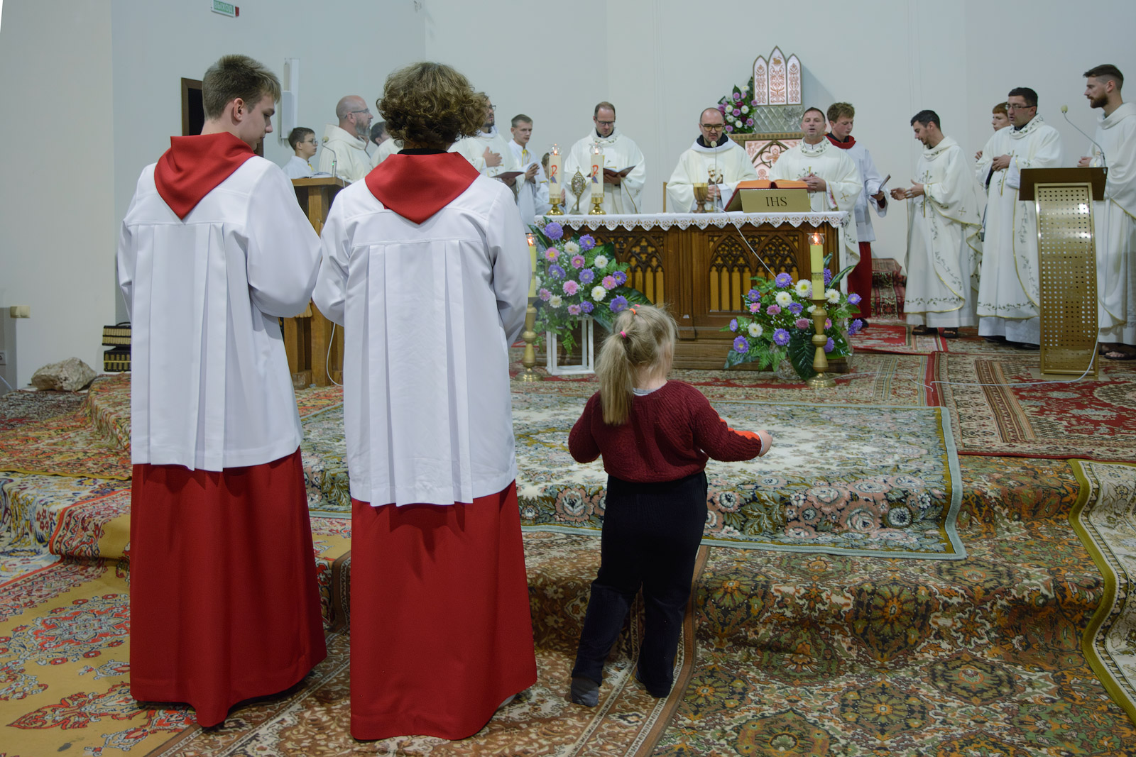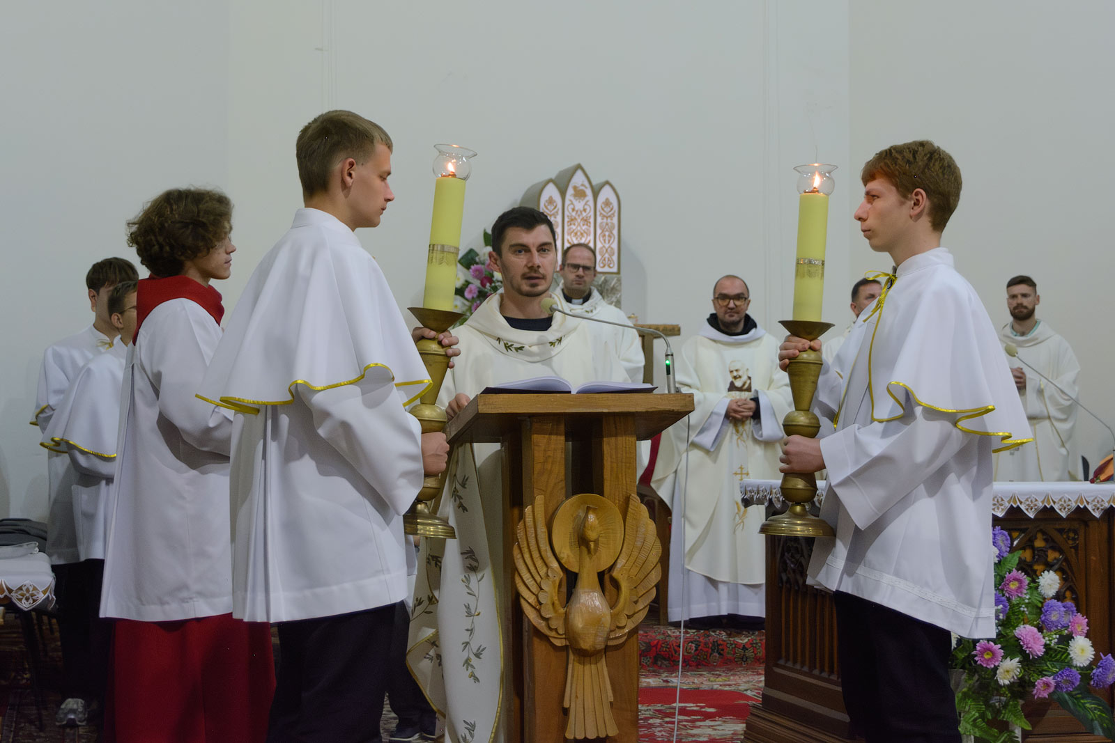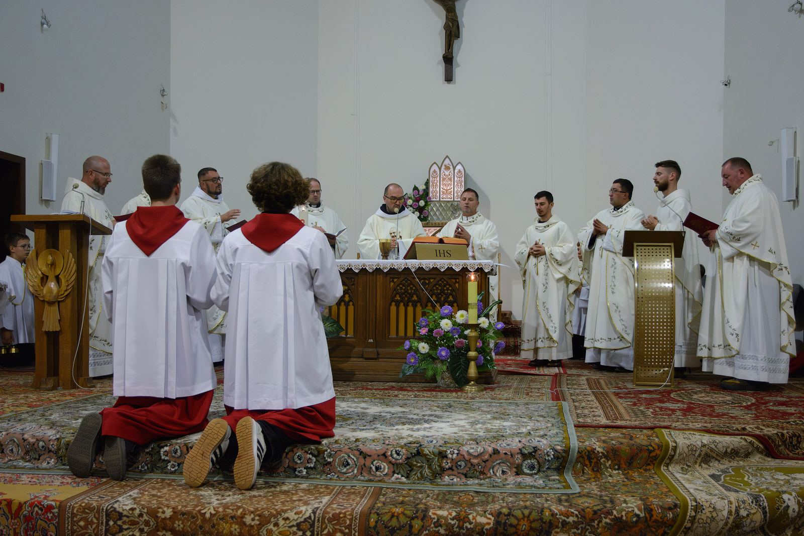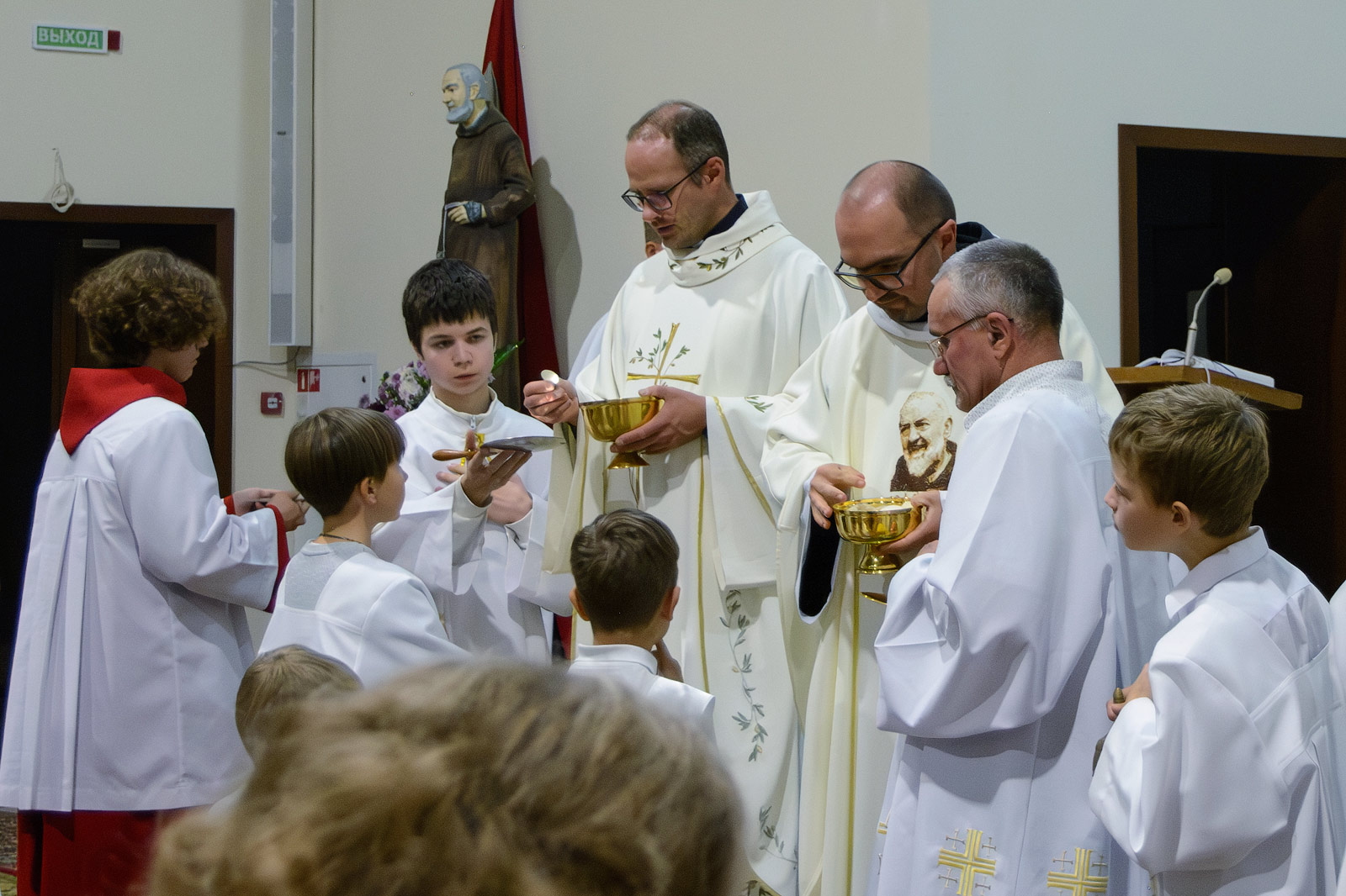 Напачатку ўрачыстасці бр. Андрэй Жылевіч прывітаў гасцей: новага дырэктара салезіянскай супольнасці ў Смаргоні кс. Алега Каралёва SDB, пробашча парафіі св. Арханёла Міхала ў Смаргоні кс. Артура Ляшнеўскага SDB, кс. кан. Юрыя Быкава, кс. Юрыя Бараўнёва, кс. Паўла Шылака, кс. Андрэя Фёдарава. Асаблівым госцем урачыстасці быў бр. Яўген Голуб OFMConv, францішканін з Івянца, які ўзначаліў св. Імшу, а таксама скіраваў да прысутных слова.