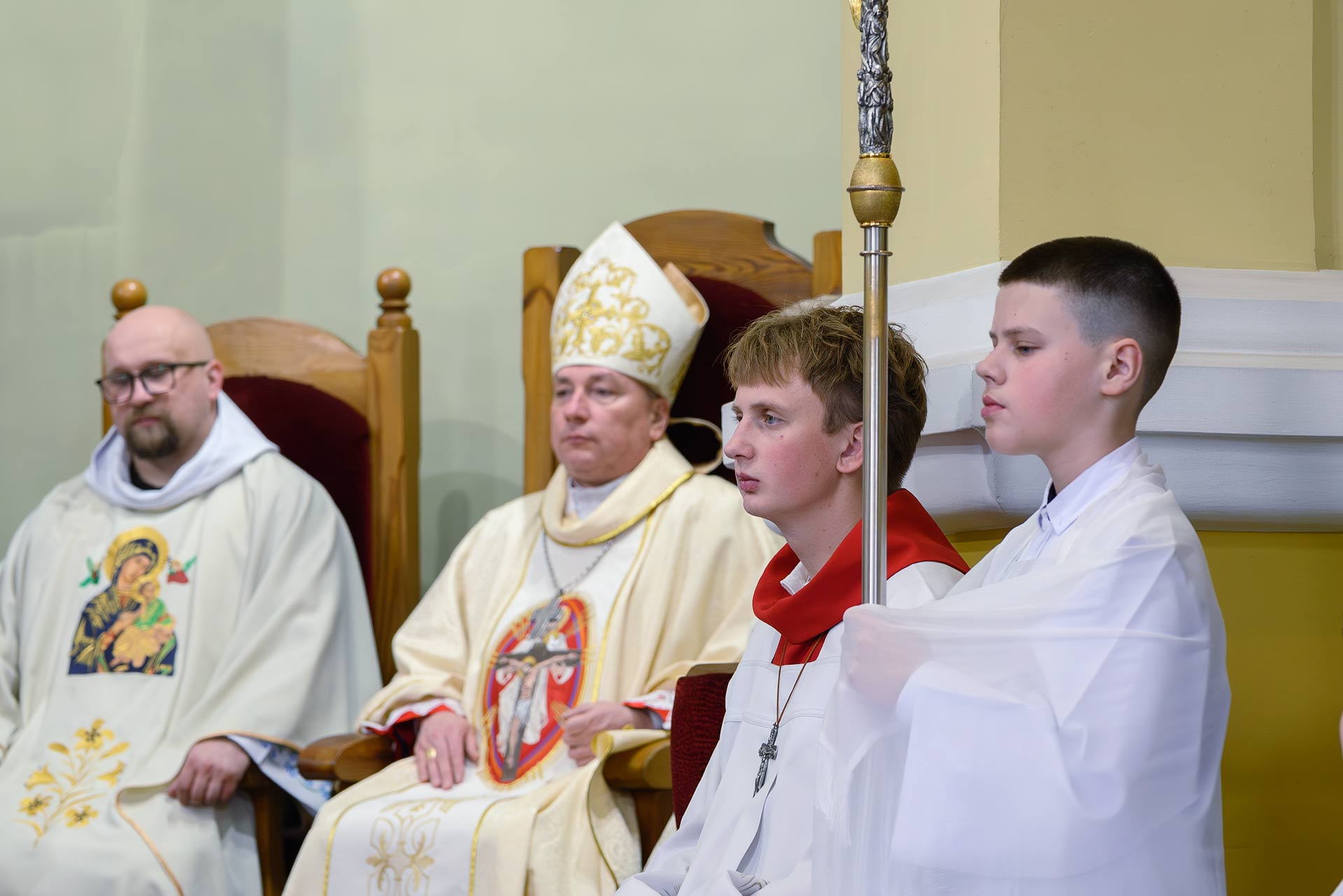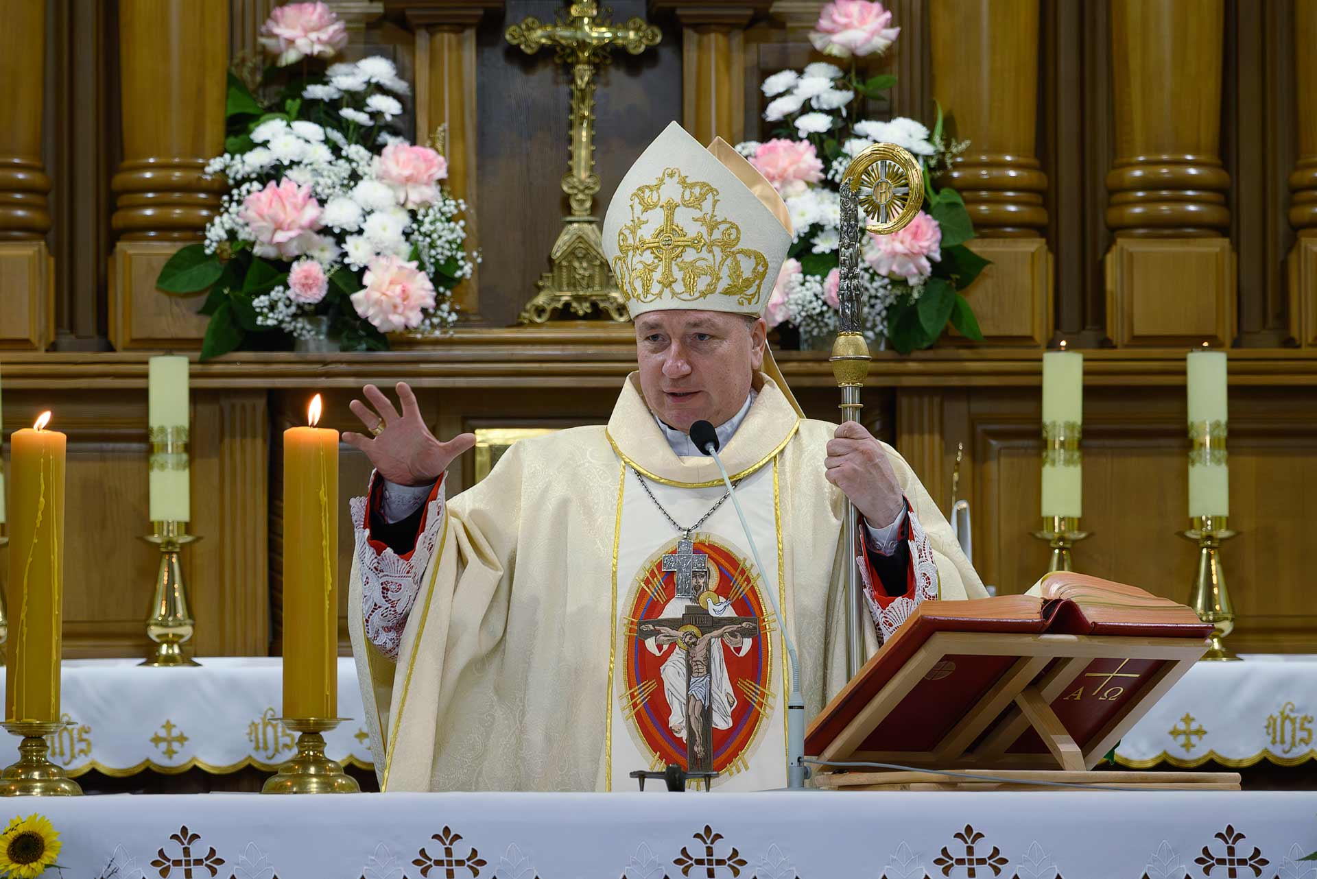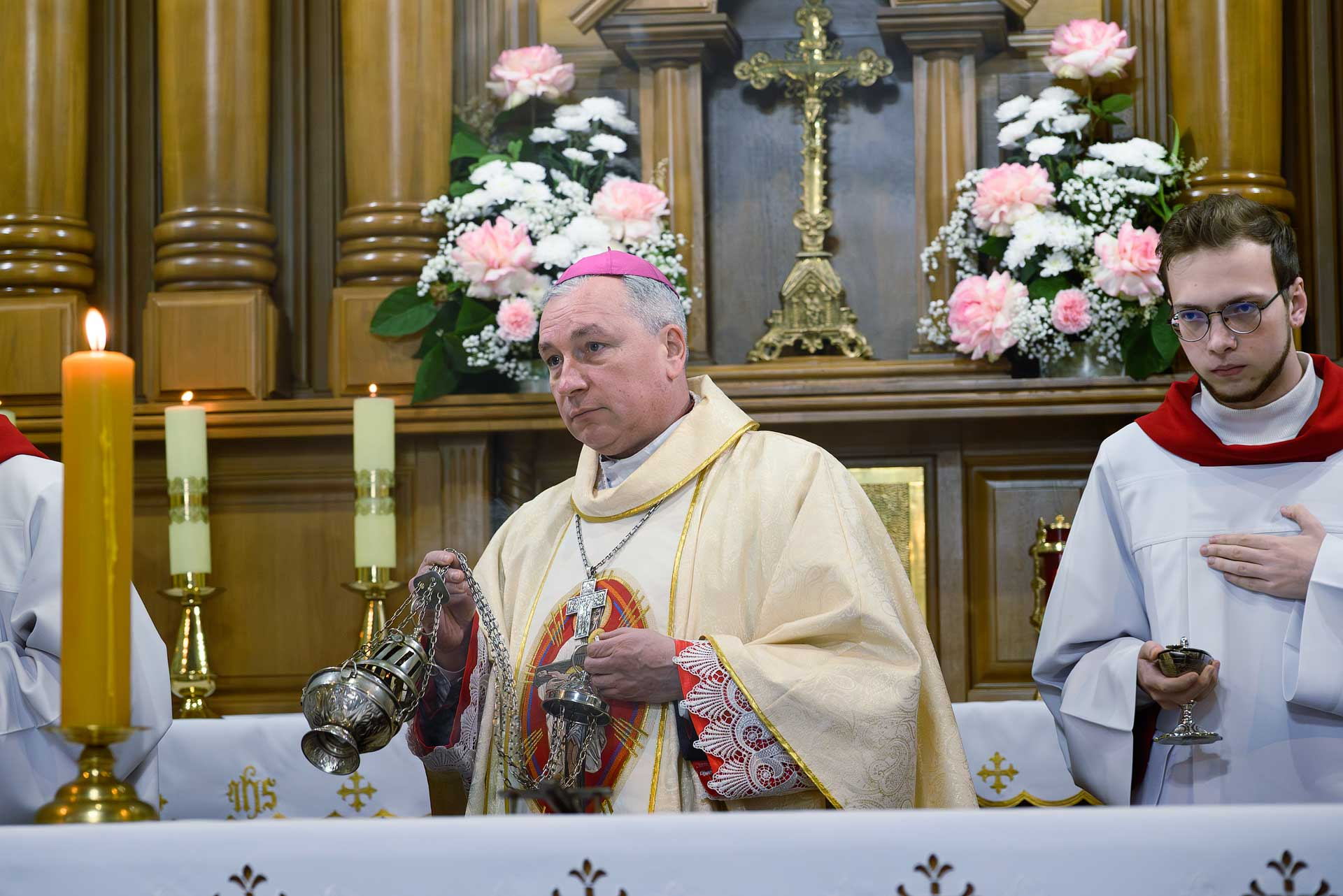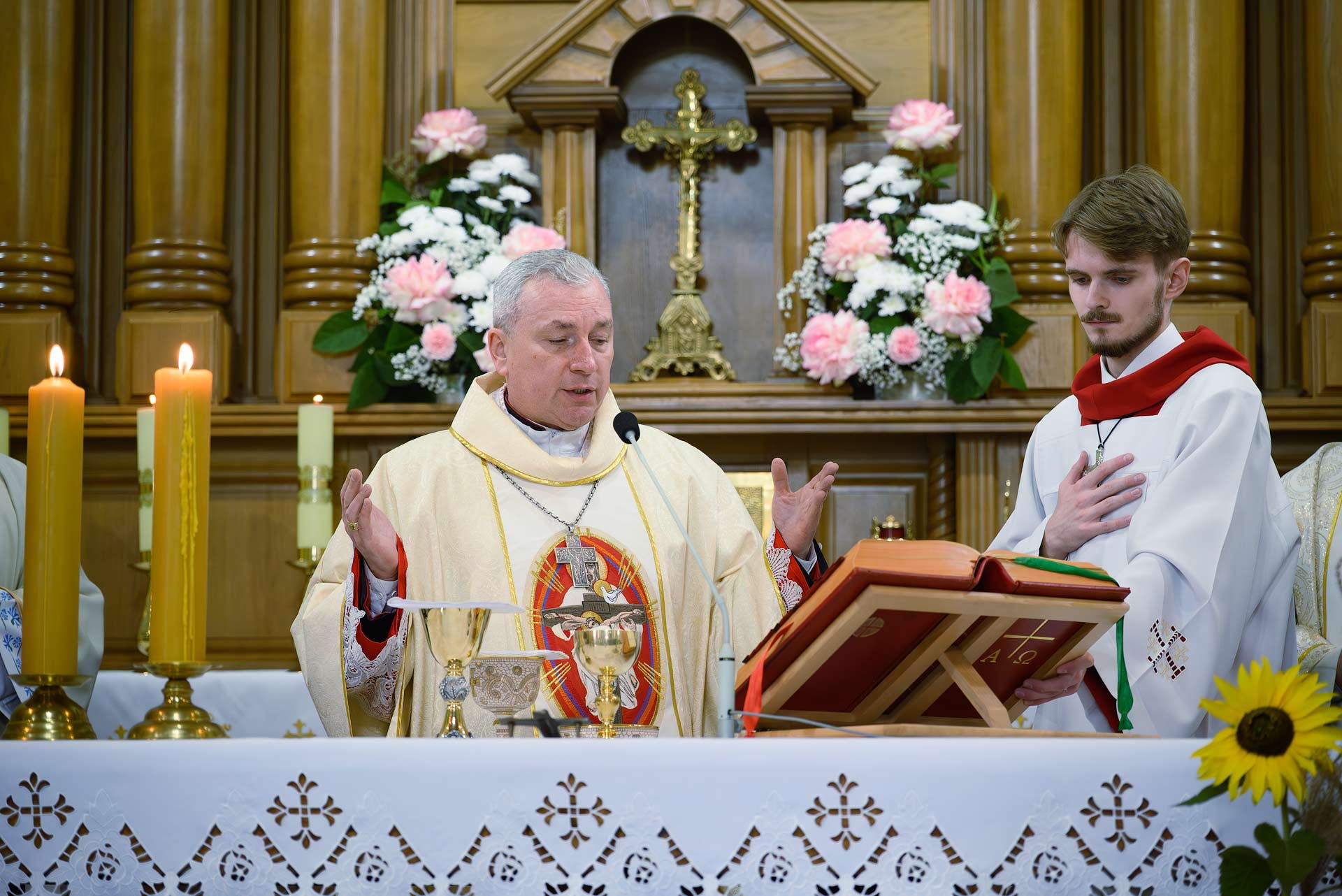 У гаміліі уладыка адзначыў, што гэты дзень для парафіі з’яўляецца падвойным святам. З аднаго боку, гэта юбілейная дата з моманту асвячэння касцёла, калі ён ператварыўся са звычайнага будынка ў дом Божы - выключную уласнасць Хрыста, месца, дзе адбываецца сапраўдная сустрэча чалавека з Богам і дзе чалавек дакранаецца да святая святых. Найперш, іерарх выказаў словы падзякі ўсім, хто прымаў удзел у будоўлі касцёла, які сваім прывабным знешнім выглядам ўпрыгожвае цэнтр горада: “Кожная цагелка – гэта кавалачак сэрца кожнага з людзей, якія дапамагалі будоўлі. Кожная малітва, ахвяра, праца - важныя. І пры будаванні, і далей пры ўтрыманні святыні”.