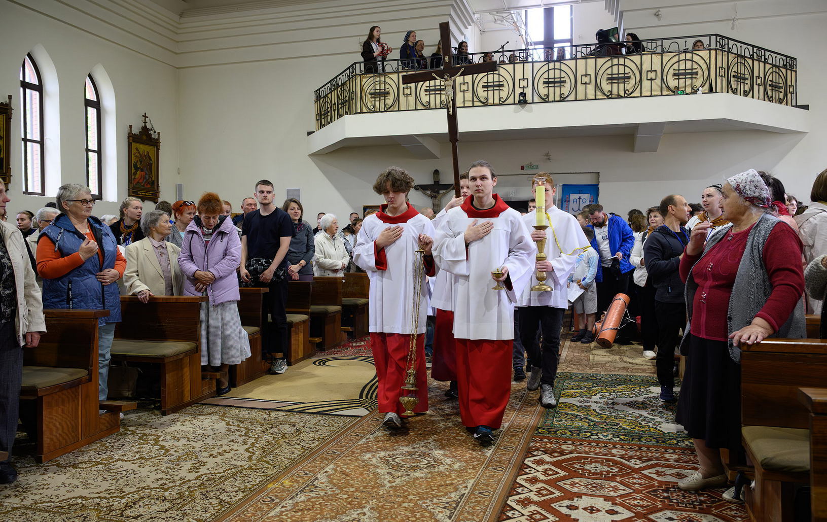 Раніцай пілігрымы прыйшлі ў касцёл Узвышэння Святога Крыжа ў Вілейцы, каб аддаць Богу шлях новага дня.