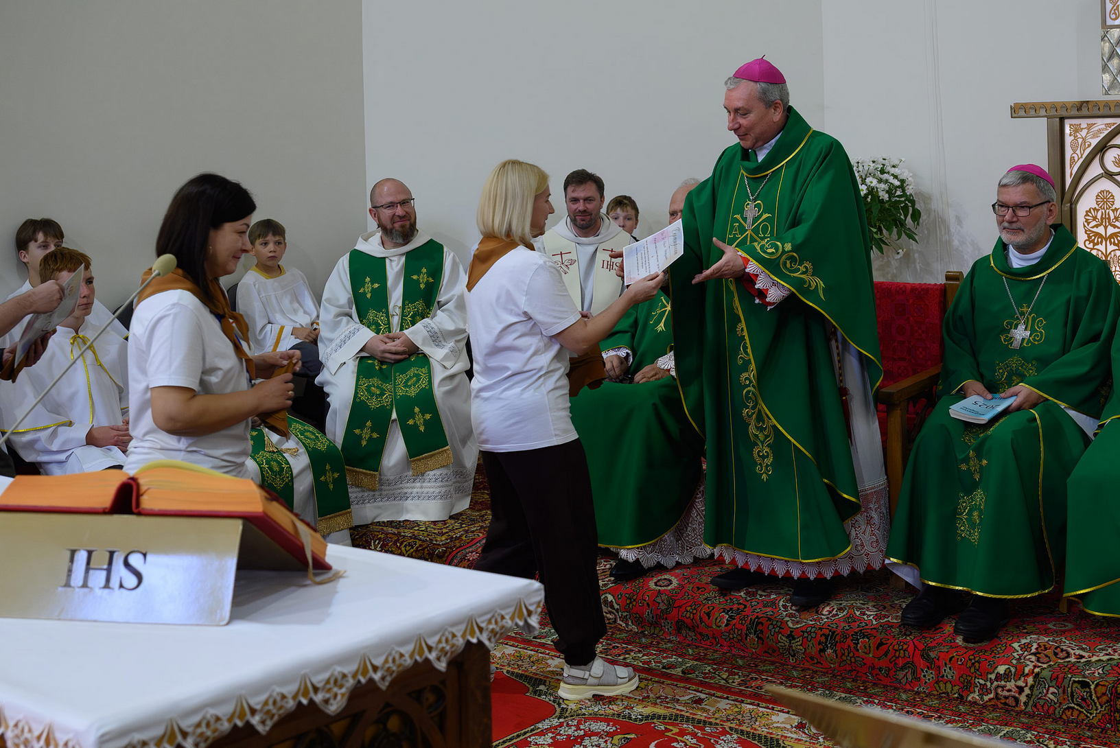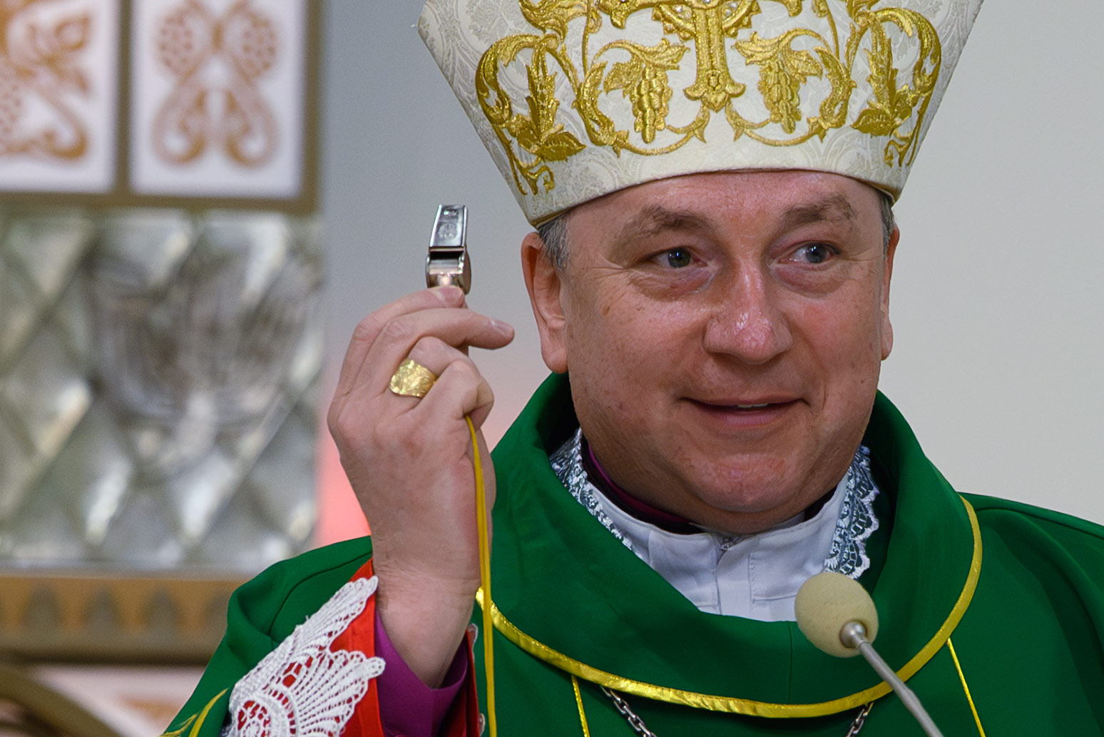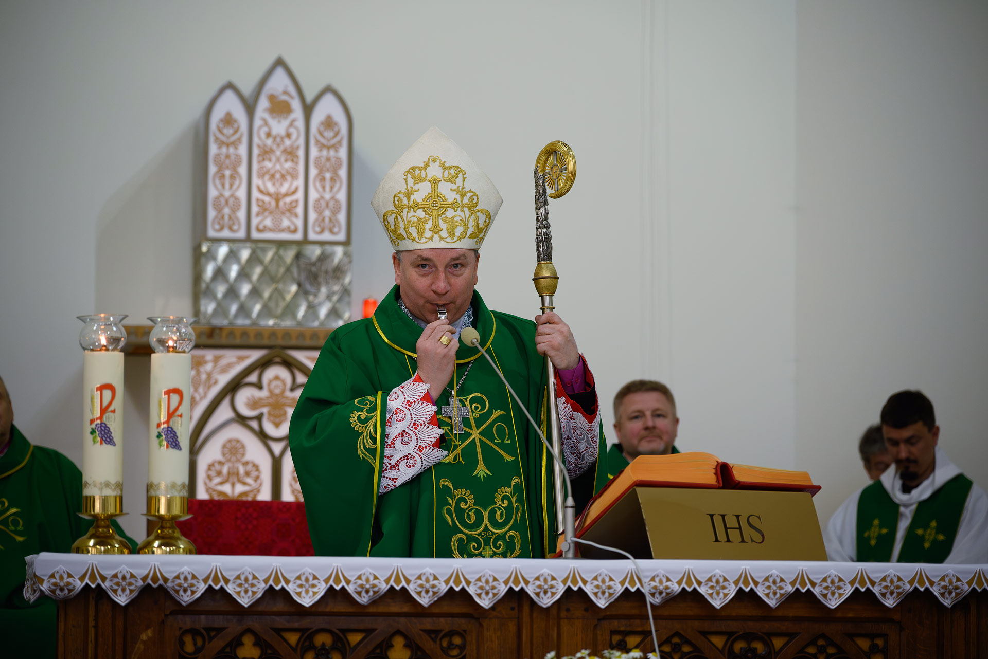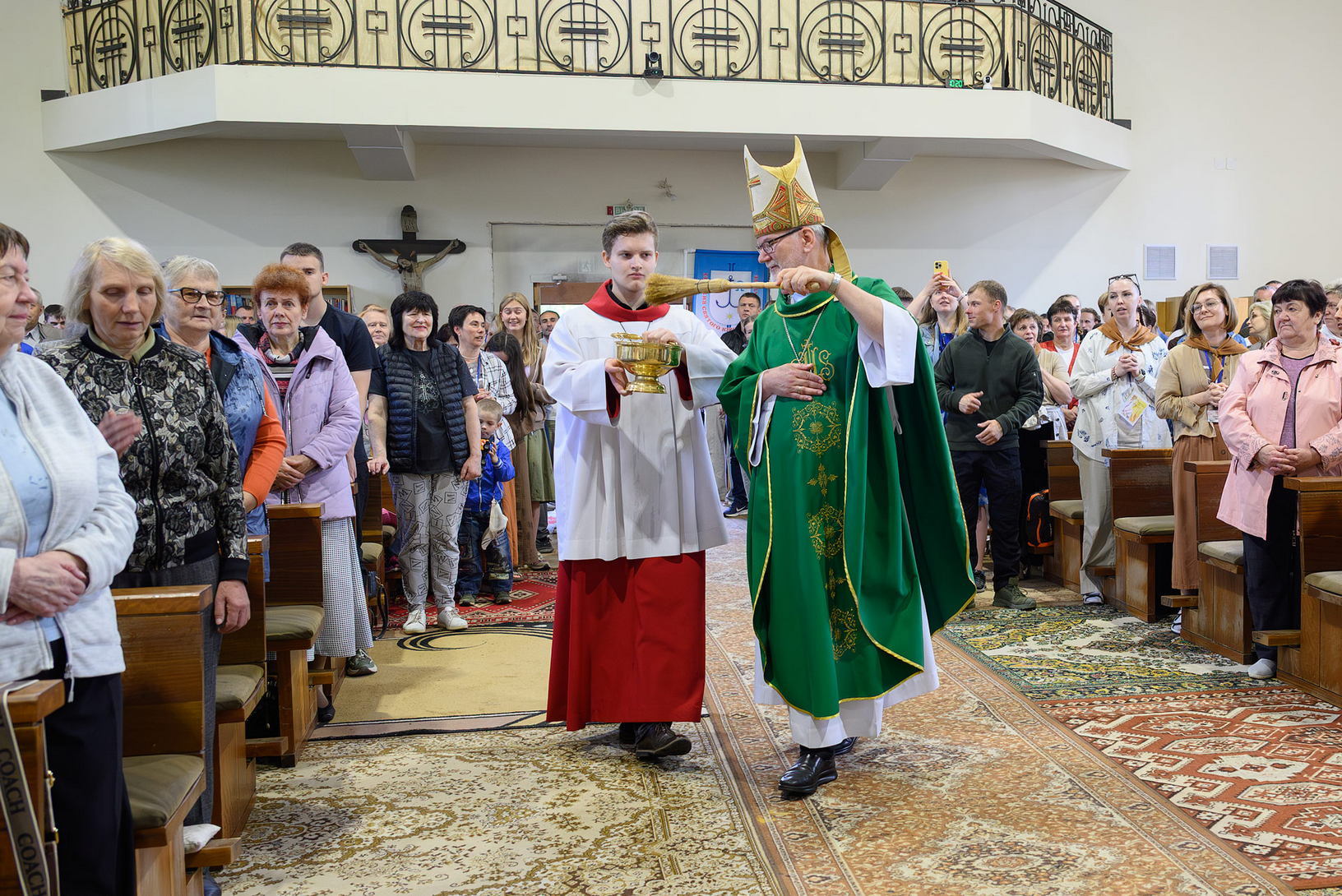 Напрыканцы Імшы ўладыка Юрый перадаў кіраўніку пілігрымкі бр. Уладзіславу Мінько свісток - сімвалічны шафар (труба з рога жывёлы, гукам якой склікалі габрэяў на сход і малітву), потым прысутныя былі акроплены асвячонай вадой - і вырушылі.
