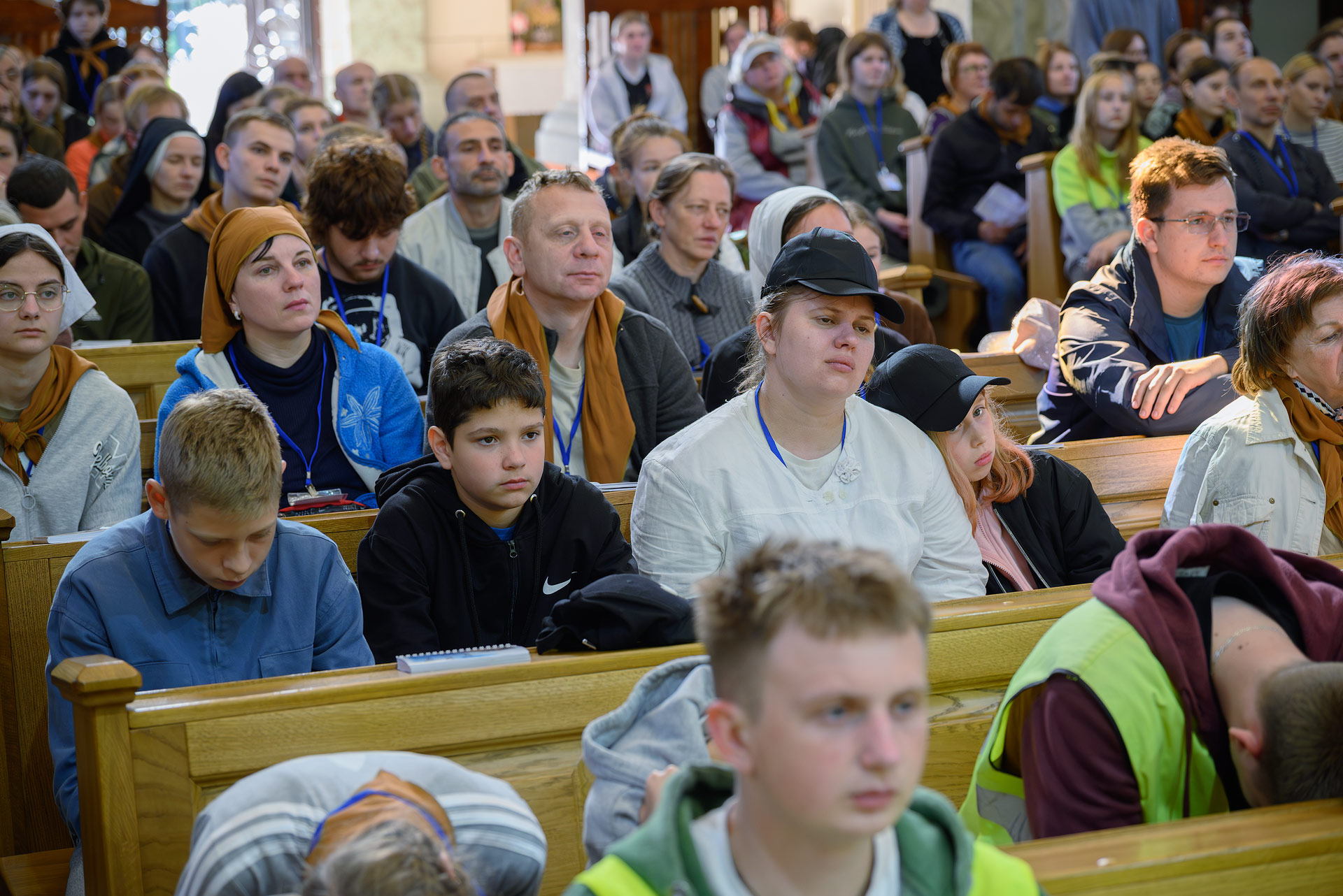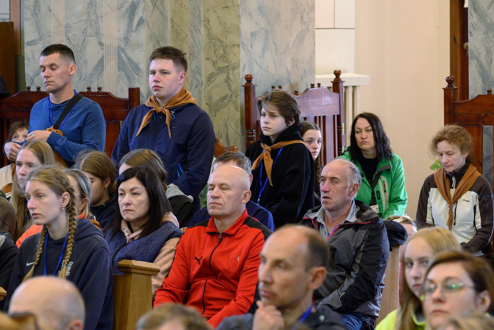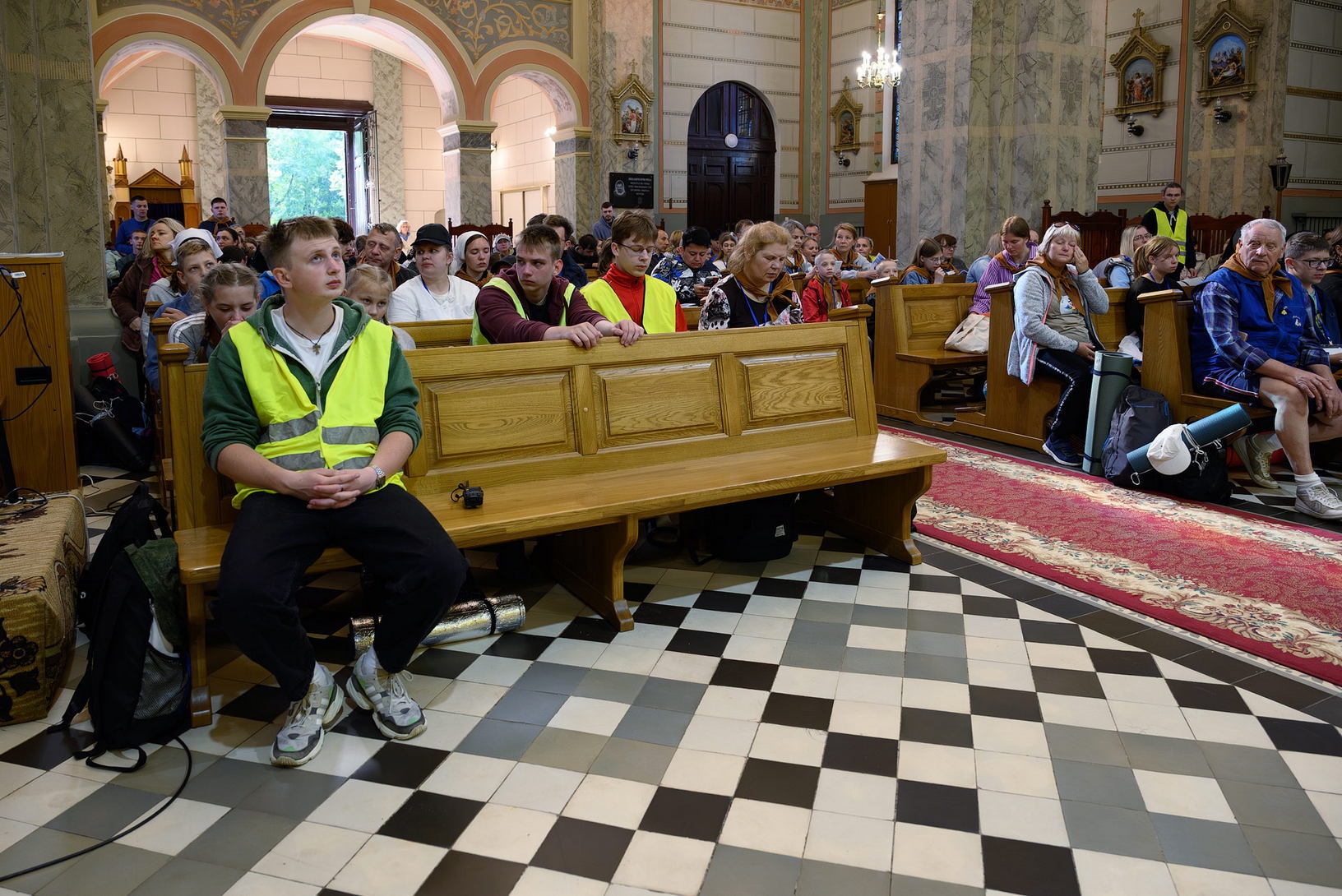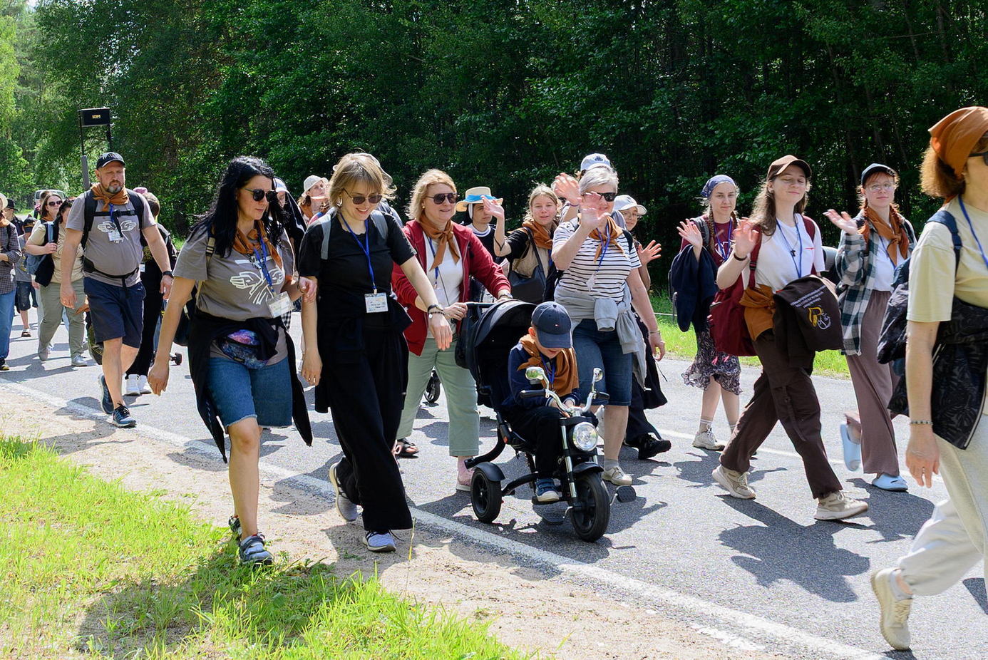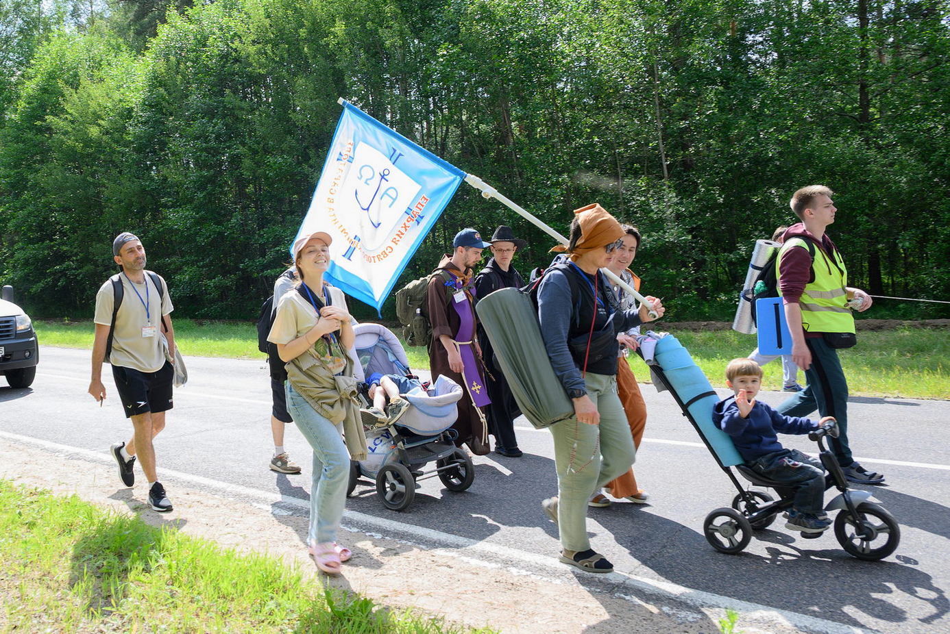 Вялікая калона паломнікаў займала адну паласу дарогі і цягнулася на некалькі дзясяткаў метраў. Таму, каб пачуць канферэнцыі і спевы, моцныя мужчыны неслі за плячыма 4 калонкі. А 9 мужчын і хлопцаў - парадкавых (пілігрымы іх празвалі "парадачнымі") праз увесь шлях кантралявалі дарожны рух, каб ісці было бяспечна. Яны бегалі ўздоўж калоны, забягалі наперад, даганялі хвост калоны... Урэшце, пакуль пілігрымы дапляліся да Будслава, адолеўшы 120 км, парадкавыя, як засведчыў смартгадзіннік, набегалі ў 1,5 разы больш.