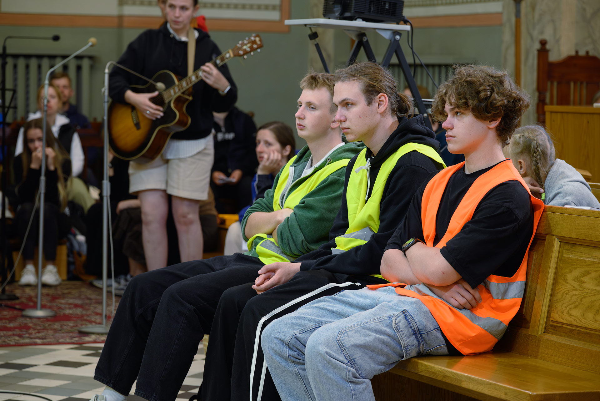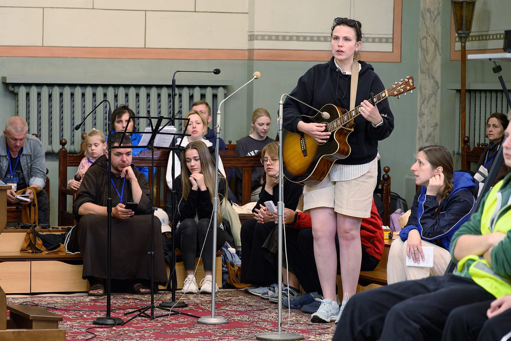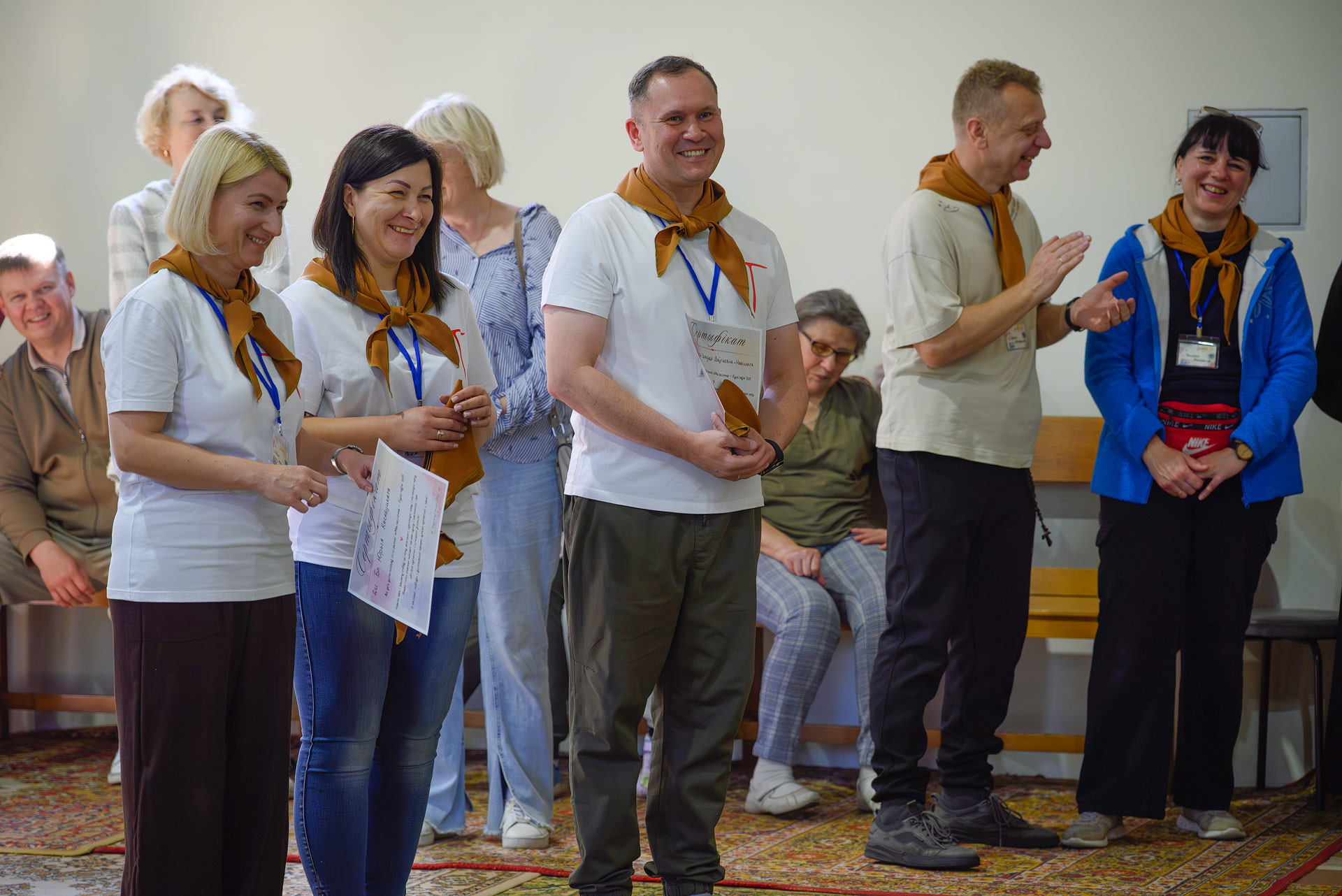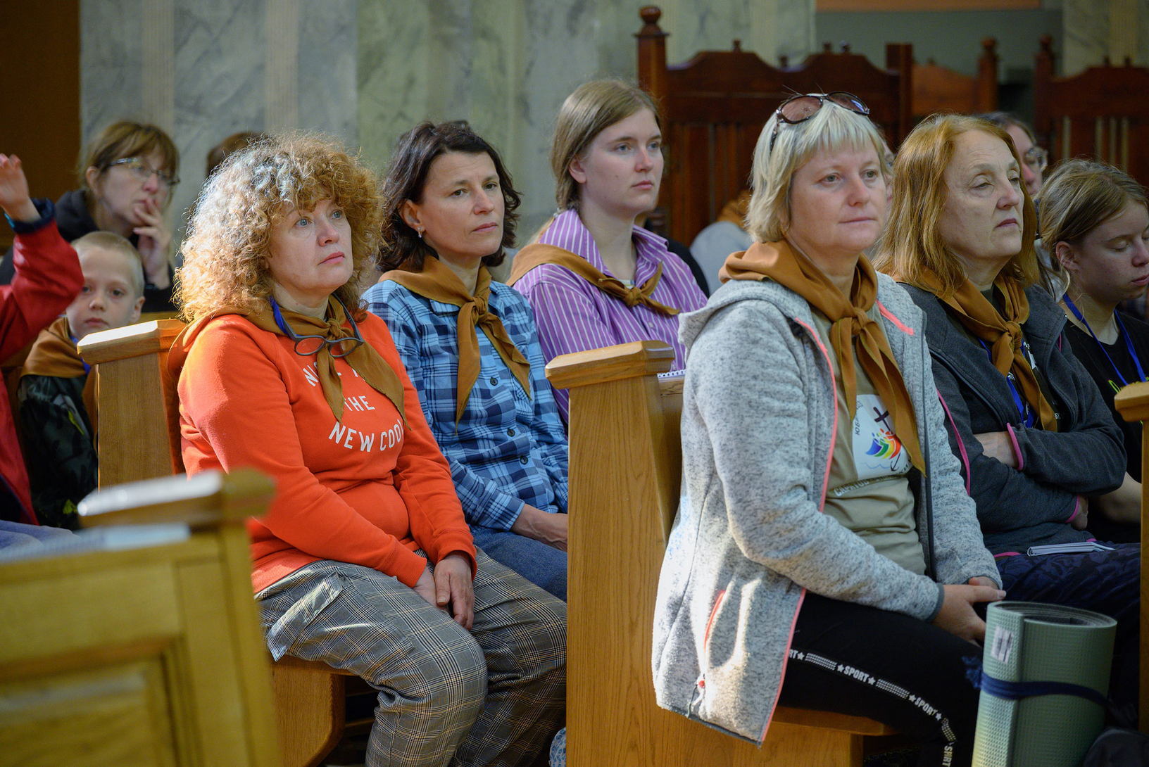 Вялікая калона паломнікаў займала адну паласу дарогі і цягнулася на некалькі дзясяткаў метраў. Таму, каб пачуць канферэнцыі і спевы, моцныя мужчыны неслі за плячыма 4 калонкі. А 9 мужчын і хлопцаў - парадкавых (пілігрымы іх празвалі "парадачнымі") праз увесь шлях кантралявалі дарожны рух, каб ісці было бяспечна. Яны бегалі ўздоўж калоны, забягалі наперад, даганялі хвост калоны... Урэшце, пакуль пілігрымы дапляліся да Будслава, адолеўшы 120 км, парадкавыя, як засведчыў смартгадзіннік, набегалі ў 1,5 разы больш.