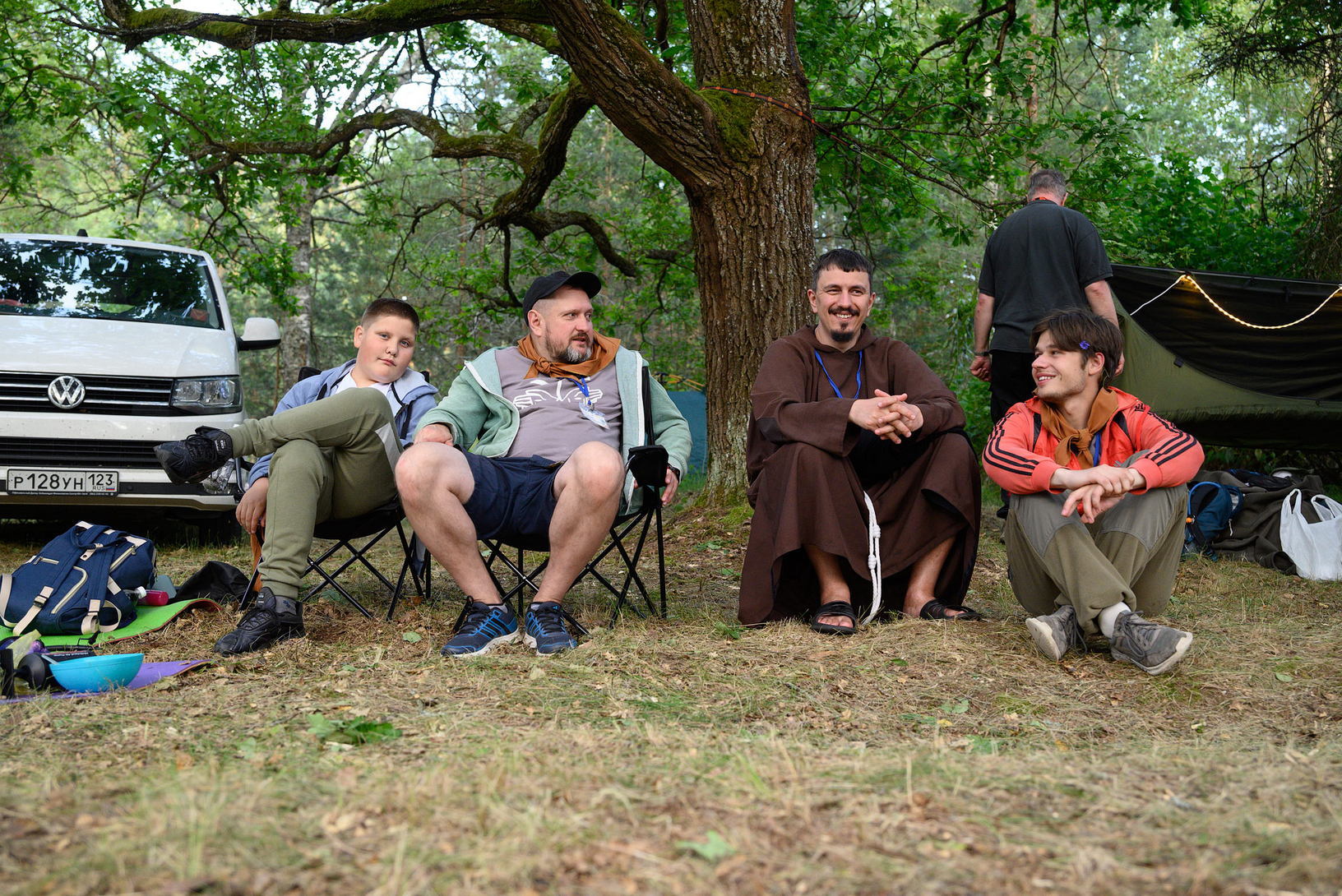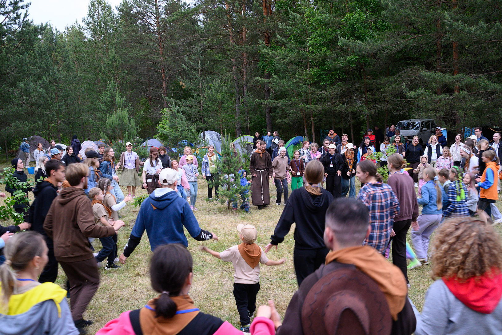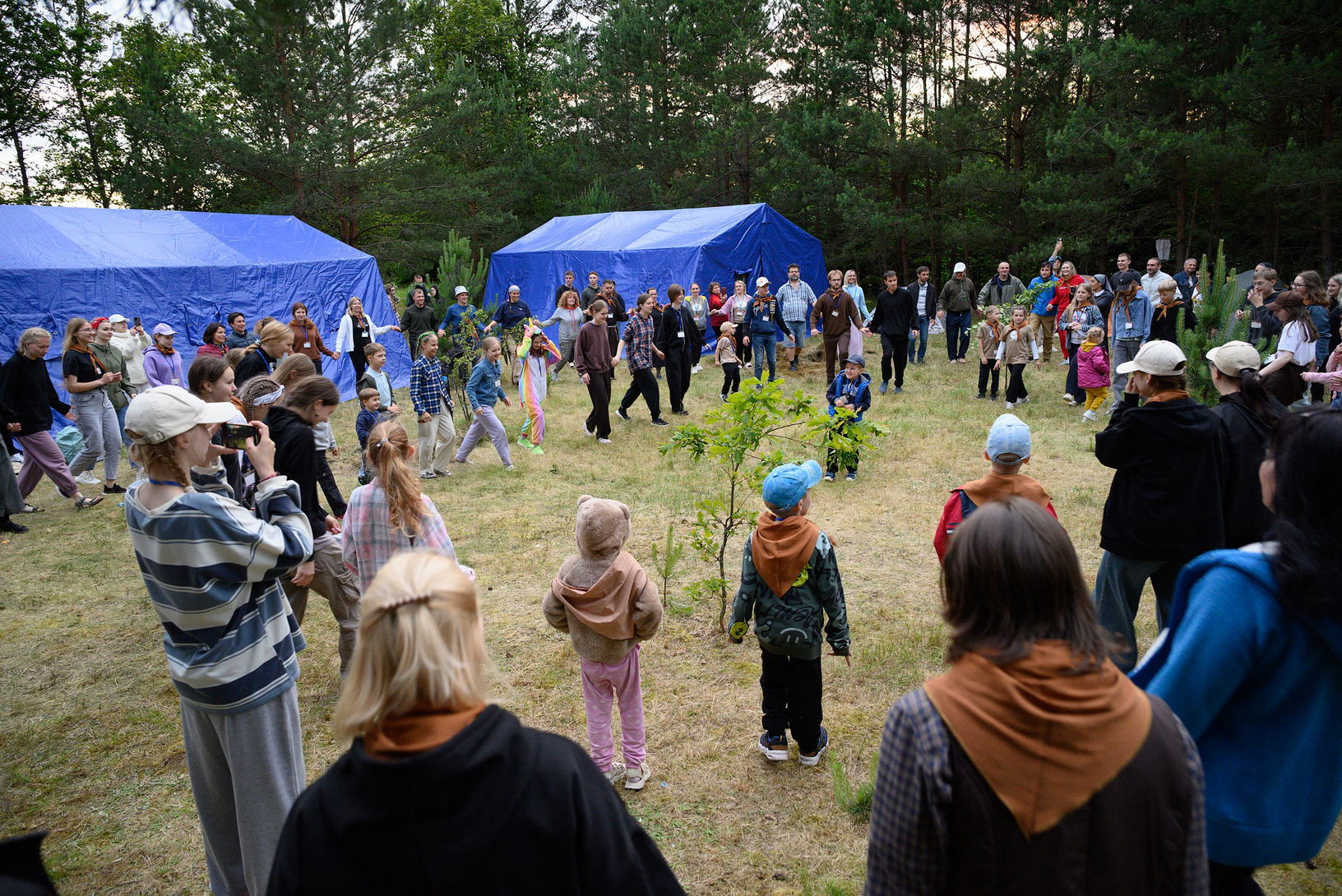 Пасля ўсіх спраў з размяшчэннем і вячэрай сабраліся каля вогнішча, каб пабыць разам, паспяваць, падзяліцца тым, што на сэрцы.