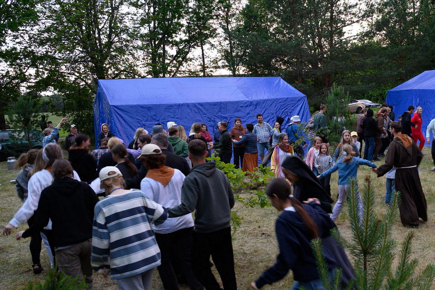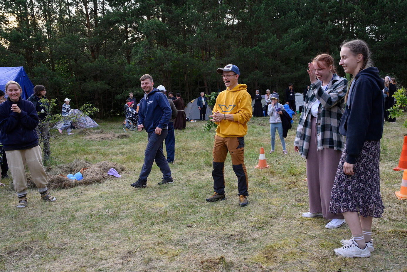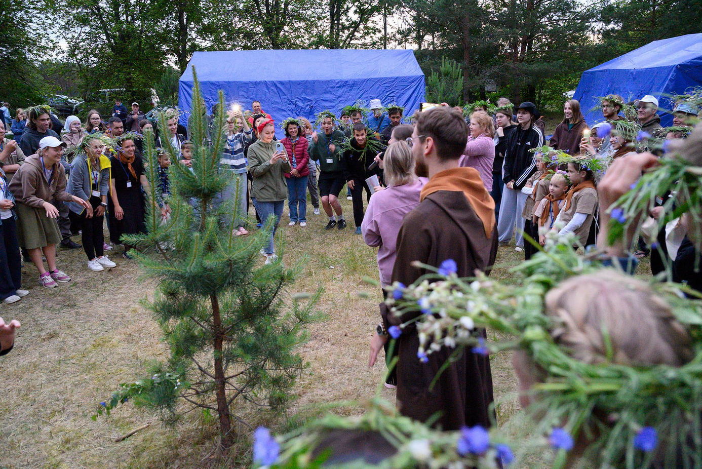 Многія паломнікі засталіся начаваць у палатачным лагеры. Сустракаліся з тымі, каго даўно не бачылі, частаваліся смачным капучына і салодкай ватай, удзельнічалі ў начной Імшы і працэсіі.