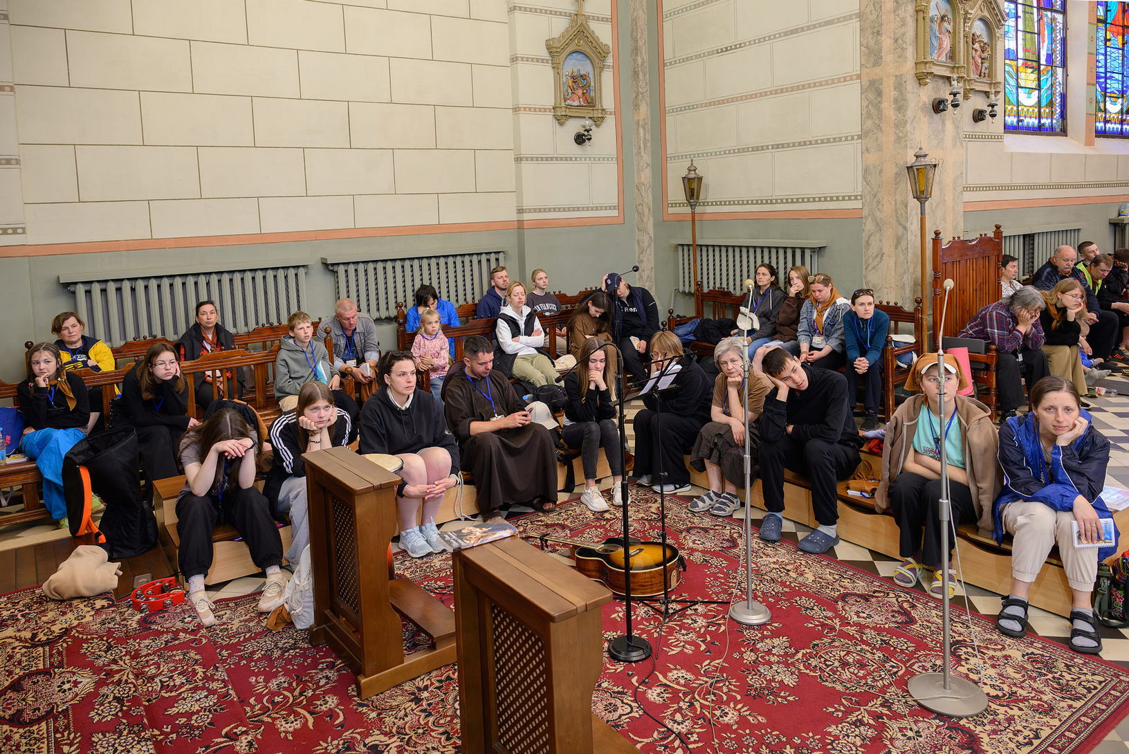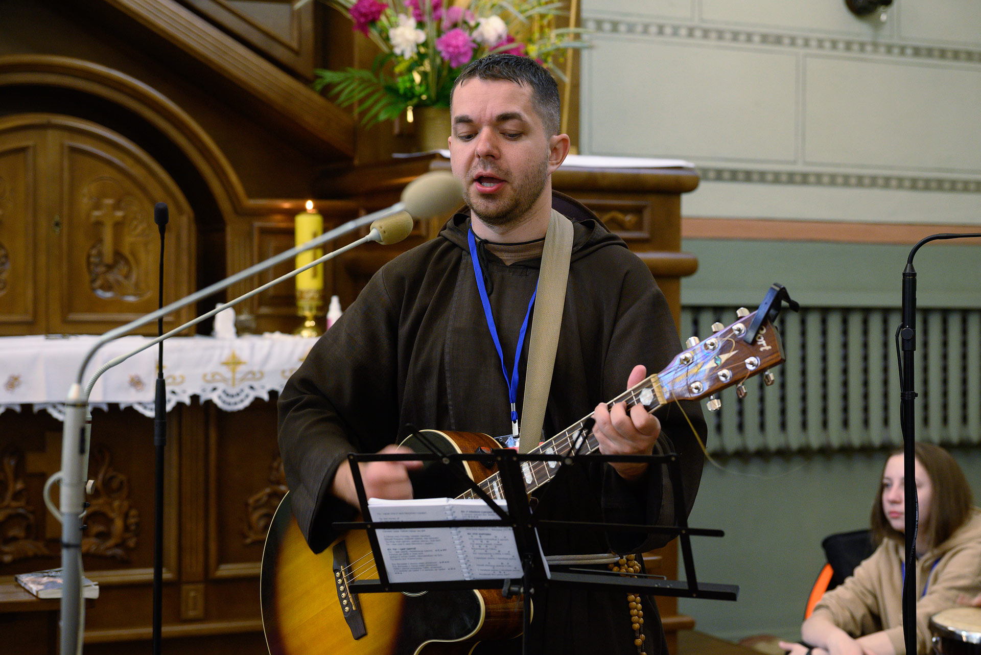 На працягу дня бр. Вадзім Войцік і бр. Андрэй Багдановіч заглыблялі нас у разважанне над строфамі Песні, у якіх св. Францішак праслаўляе Творцу за стыхіі: вецер, ваду, агонь, зямлю.