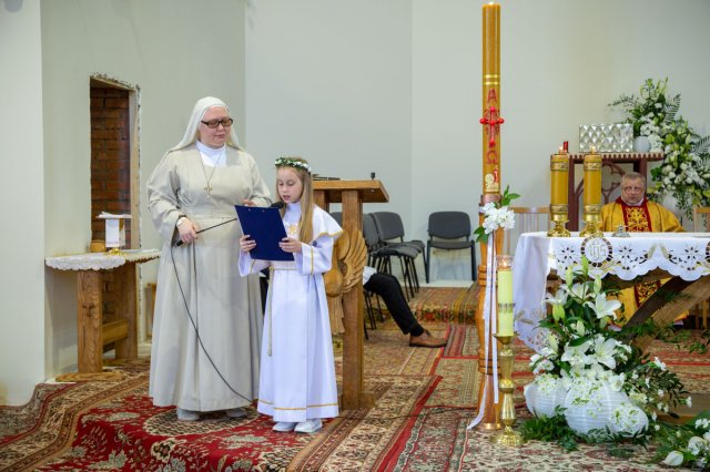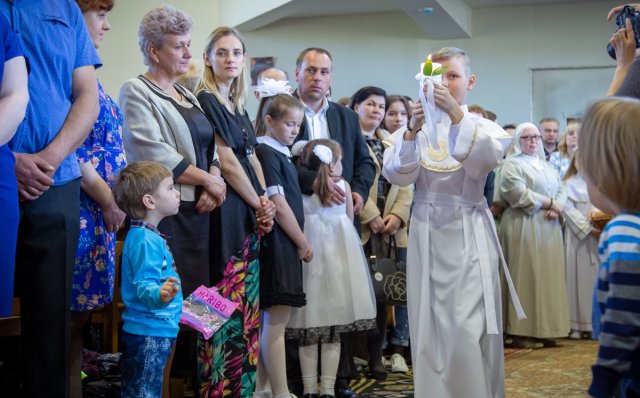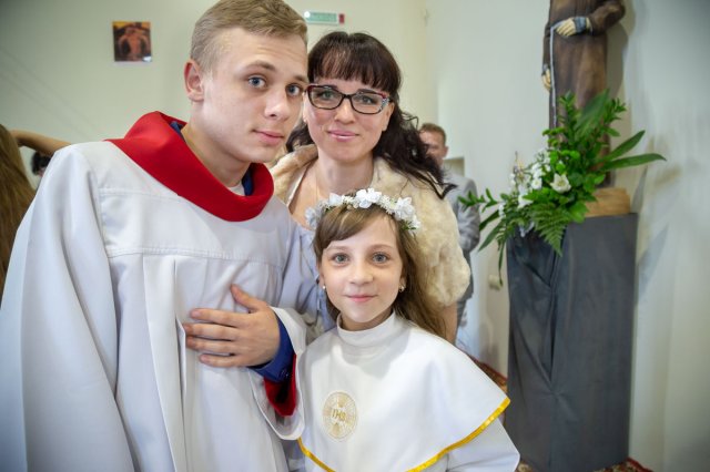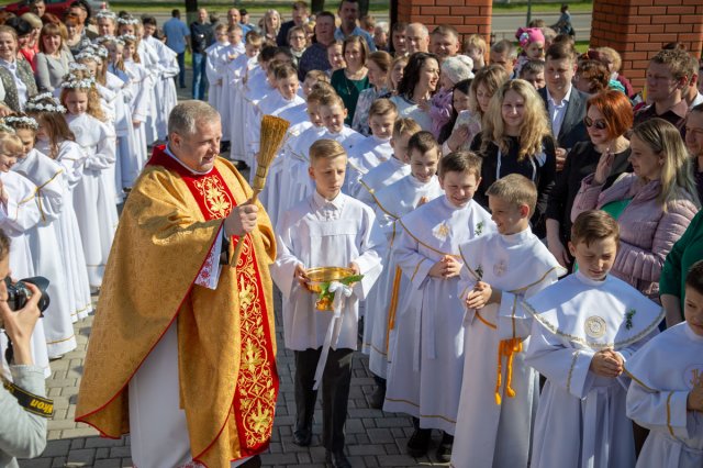Разам з бацькамі, хроснымі і ўсімі роднымі і знаёмымі уся парафія святкавала гэтую падзею! Дзякуй Пану Богу за вялікі дар Цела і Крыві Езуса Хрыста! “Хто спажывае Маё Цела і п’е Маю Кроў, той мае жыццё вечнае і Я ўваскрашу яго ў апошні дзень”