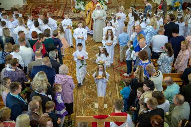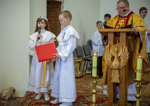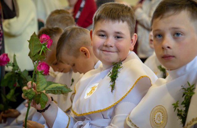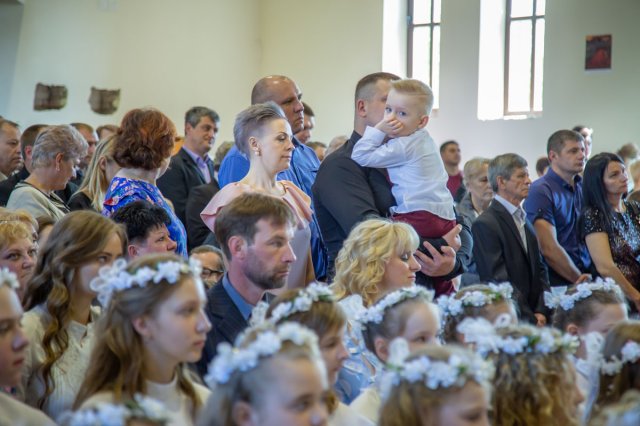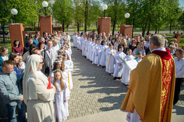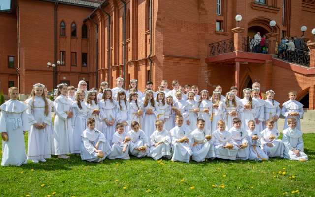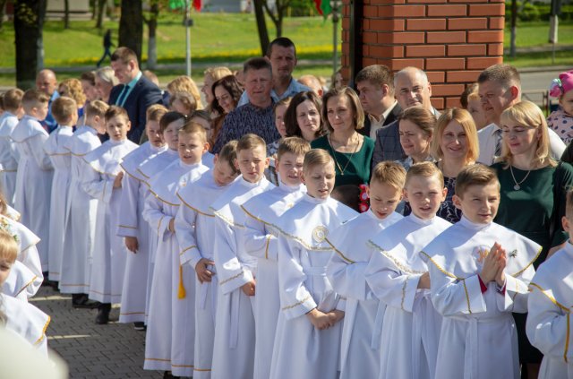 12 мая ў нашай парафіяльнай супольнасці 49 дзяцей першы раз прыняло да сваіх сэрцаў Жывога Бога – Езуса Хрыста ў сакрамэнце Эўхарыстыі.