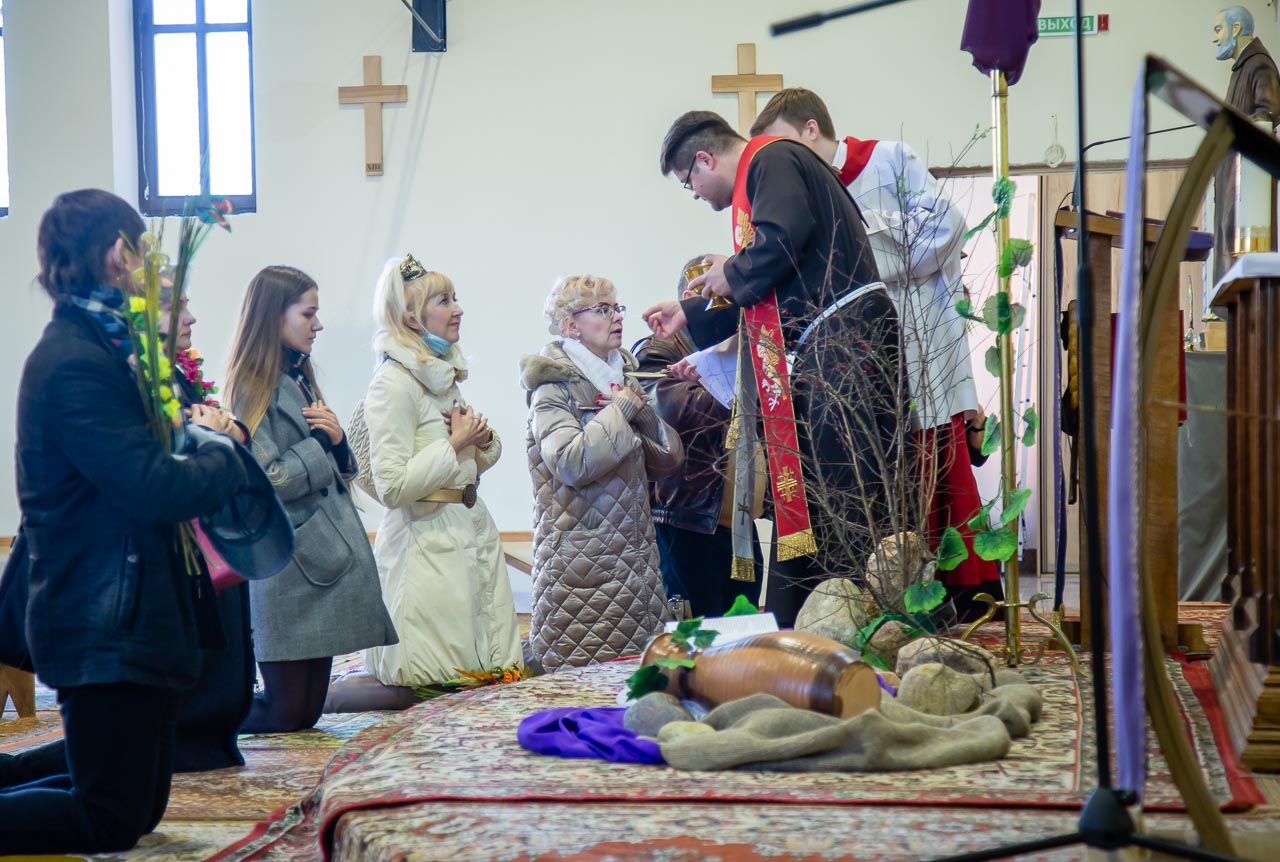 Сення ўрачыстую Св. Імшу цэлебраваў пробашч, брат Ігар Колзун. Пад час гаміліі асаблівую ўвагу ён звярнуў на ўрывак з Евангелля паводле Мц. 21, 1-11.