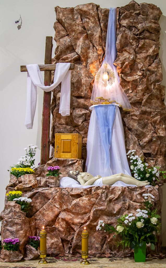 Літургію Вялікай пятніцы завяршыў абрад перанясення Найсвяцейшага Сакрамэнта ў грабніцу, дзе Ён застанецца аж да Пасхальнай вігіліі. Трыумф Крыжа быў незаўважальны, таму мы можам з верай сказаць, што гроб Езуса – гэта час чакання на поўны Трыумф над грахом і смерцю.