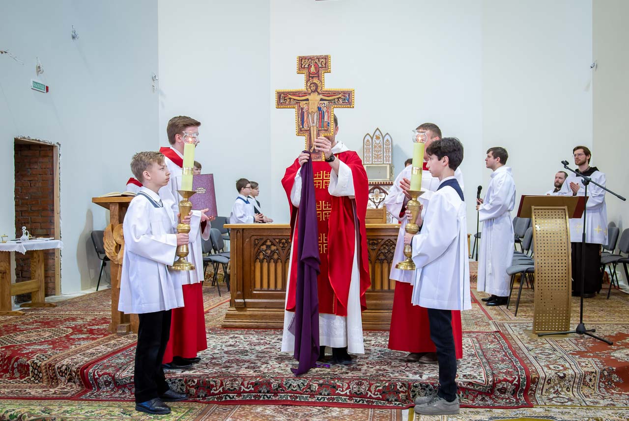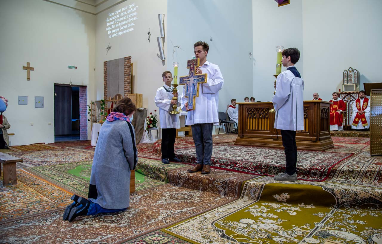 Цэлебрацыю літургіі Мукі Пана ў нашай парафіі ўзначаліў брат Андрэй Квяцінскі. У гэты дзень Касцёл не здзяйсняе звычайнай Эўхарыстыі. Галоўнае месца займае адарацыя Крыжа. Крыж – можна назваць адной з галоўных кніг Божага Аб’яўлення, кніг Святога Пісання, якую трэба вучыцца чытаць.