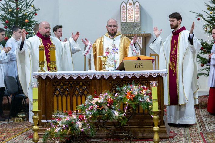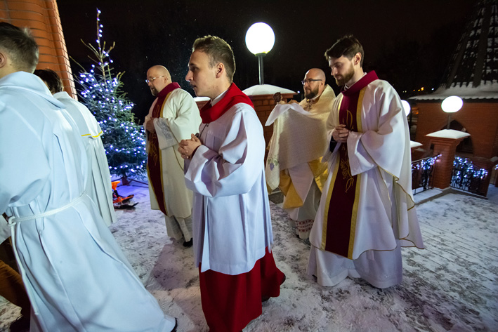 Імша распачалася працэсіяй, у якой маленькі Езус быў ўрачыста пранесены і змешчаны ў яслі. Хрыстос нарадзіўся! Славім Яго!
