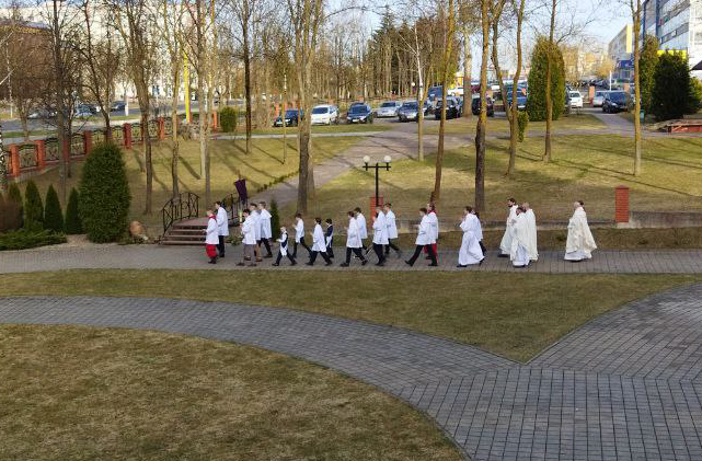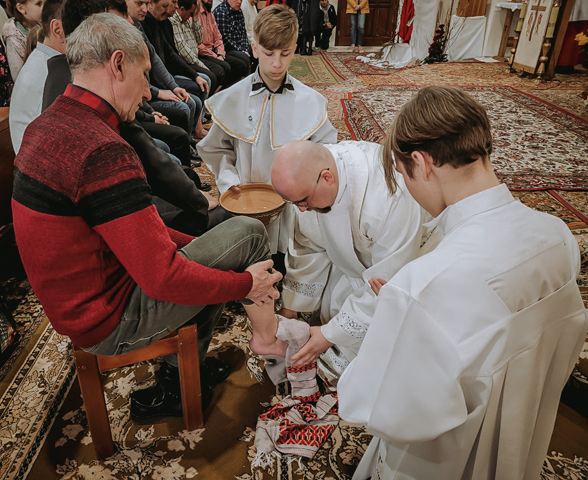 У Вялікі чацвер а. Ігар Колзун, пробашч нашай парафіі, цэлебраваў адмысловую Святую Імшу Вячэры Пана, якой распачаўся Пасхальны Трыдуум.