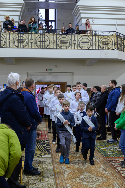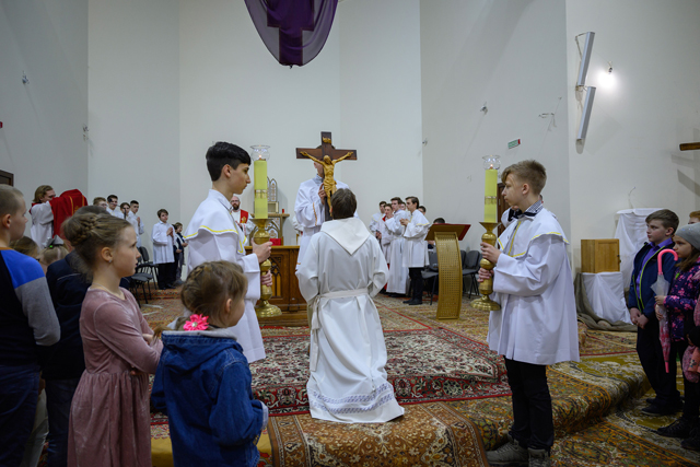 Пасля гаміліі адбылося ўрачыстае адкрыццё Крыжа, які быў пакрыты фіялетавай тканінай ад V Нядзелі Вялікага посту.