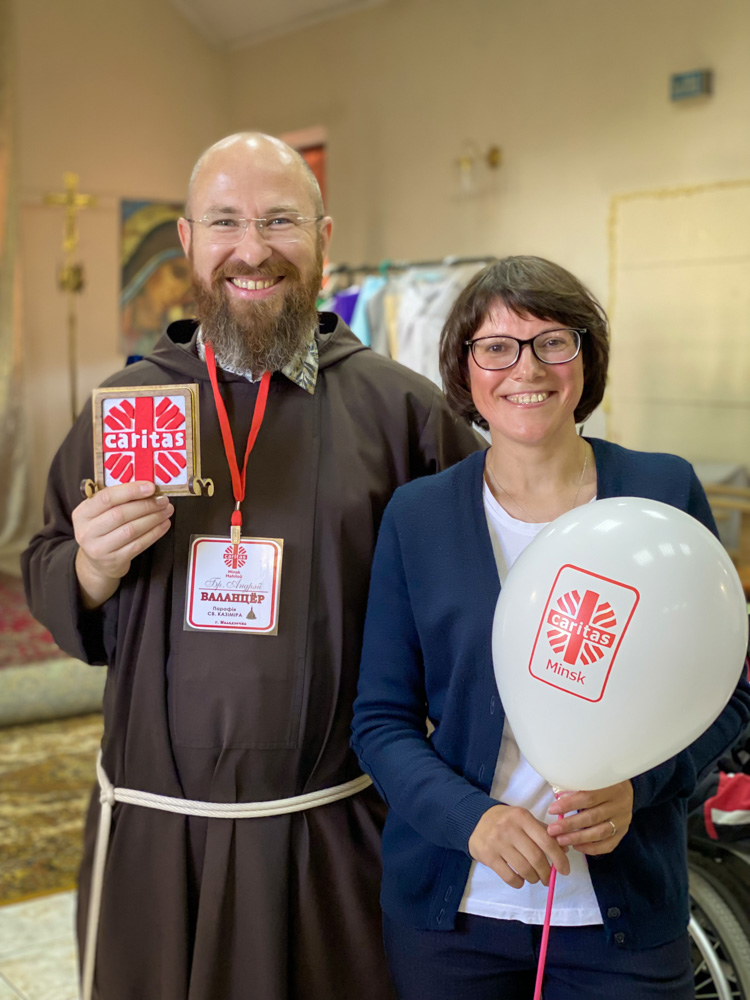 Святкаванне пачалося разам з братамі капуцынамі. На пачатку, прамовіў брат Андрэй Жылевіч, пад кіраўніцтвам якога гэта суполка дзейнічае. Ён падзякаваў усім прысутным валанцёрам парафіяльнага Карытас за тое, што яны жадаюць здзяйсняць добрыя ўчынкі разам, несці Божую міласэрнасць бліжнім і патрабуючым, ахвяраваць свой час і нават сродкі, рабіць дабро дабравольна і безкарысна на хвалу Пана.