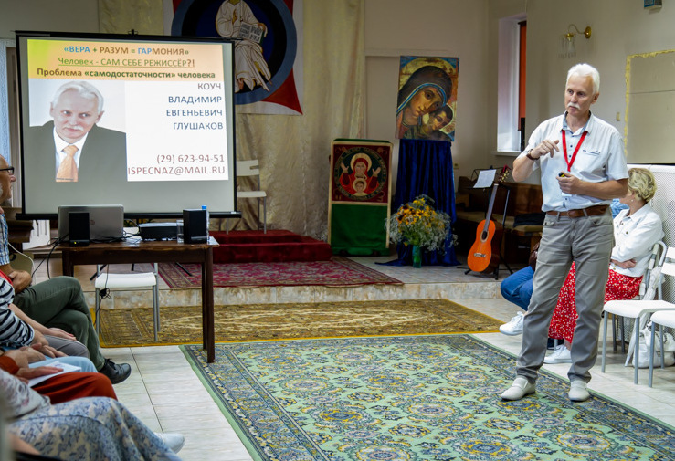 Сабраліся слухачы як з мінулай сустрэчы, так і новыя. Уладзімір Глушакоў з першых хвілін завалодаў увагай прысутнічаючых і трымаў яе да канца трэнінга. У атмасферы даверу і ўзаемнага імкнення знайсці адказы на шматлікія пытанні, якія ставіў да аўдыторыі лектар. Парафіяне працавалі над тэмай крызісных сітуацый і выхаду з іх, стрэсаўстойлівасці і крэатыўнасці мыслення.